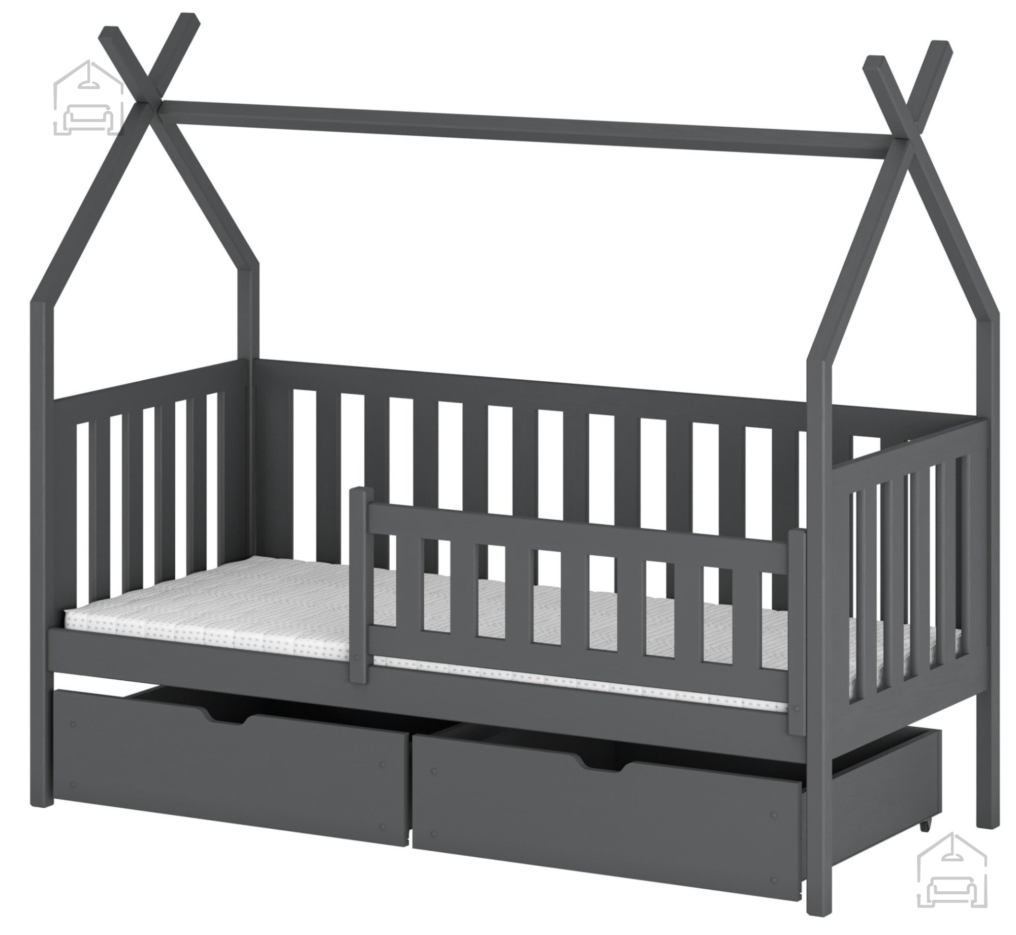 Otroška postelja hiška Simba - 90x190 cm - grafit je več kot le postelja; je vstopnica v svet domišljije in varnosti. S svojo trpežno konstrukcijo, praktičnimi funkcijami in sodobnim dizajnom, ta postelja zagotavlja, da bodo sanje vašega otroka vedno sladke. Ne čakajte več, privoščite svojemu otroku posteljo, ki bo navdih za nešteto zgodb in pustolovščin. | Material: Iveral 16 mm Barva: kathult + sivaDimenzije: 1700x900x420 mm