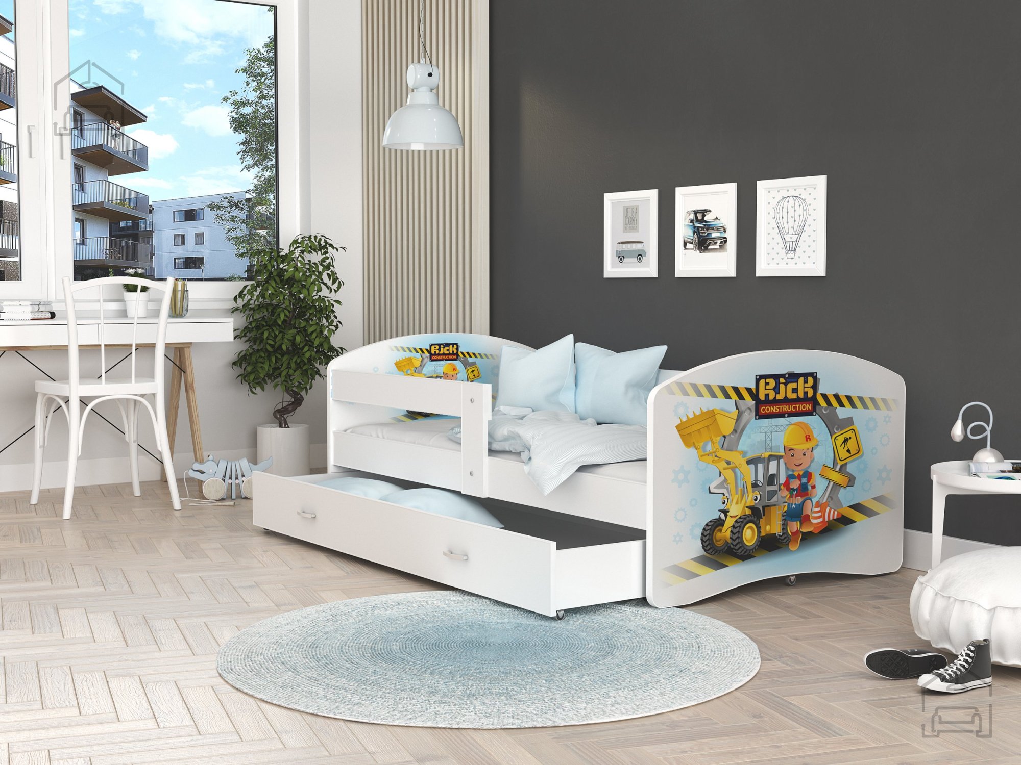 Postelja je narejena tako, da združuje funkcionalnost, modernost in predvsem kakovost. Otroška postelja s predalom za posteljnino in poslikavo. | Ležalna površina: 160x200 cm