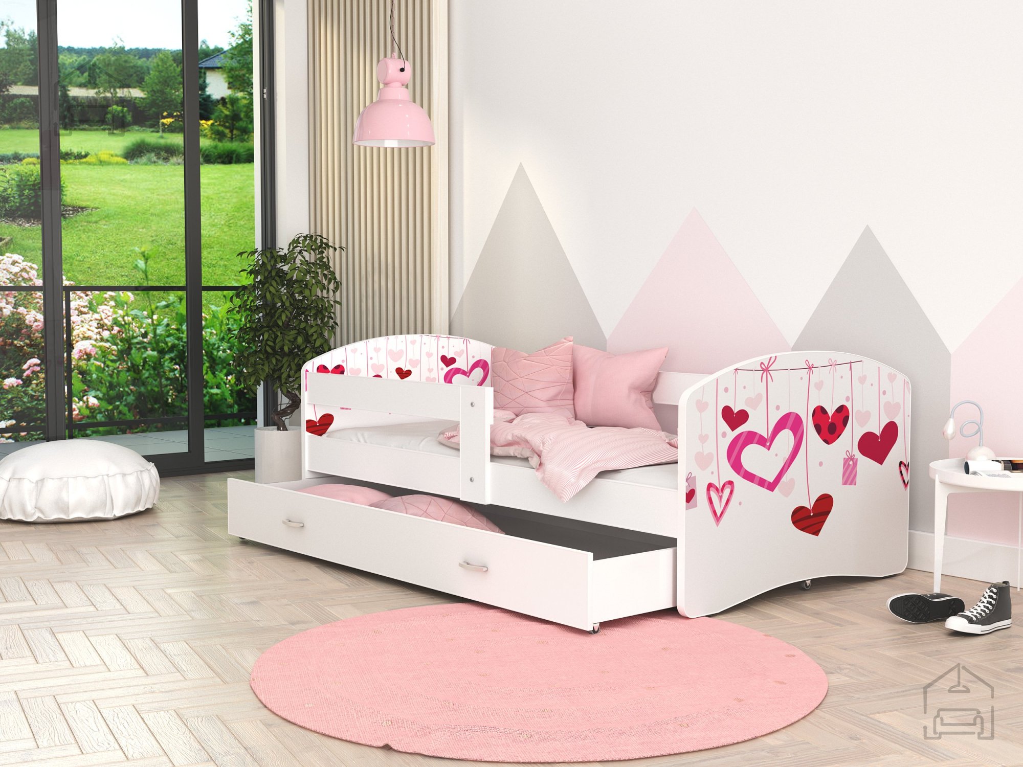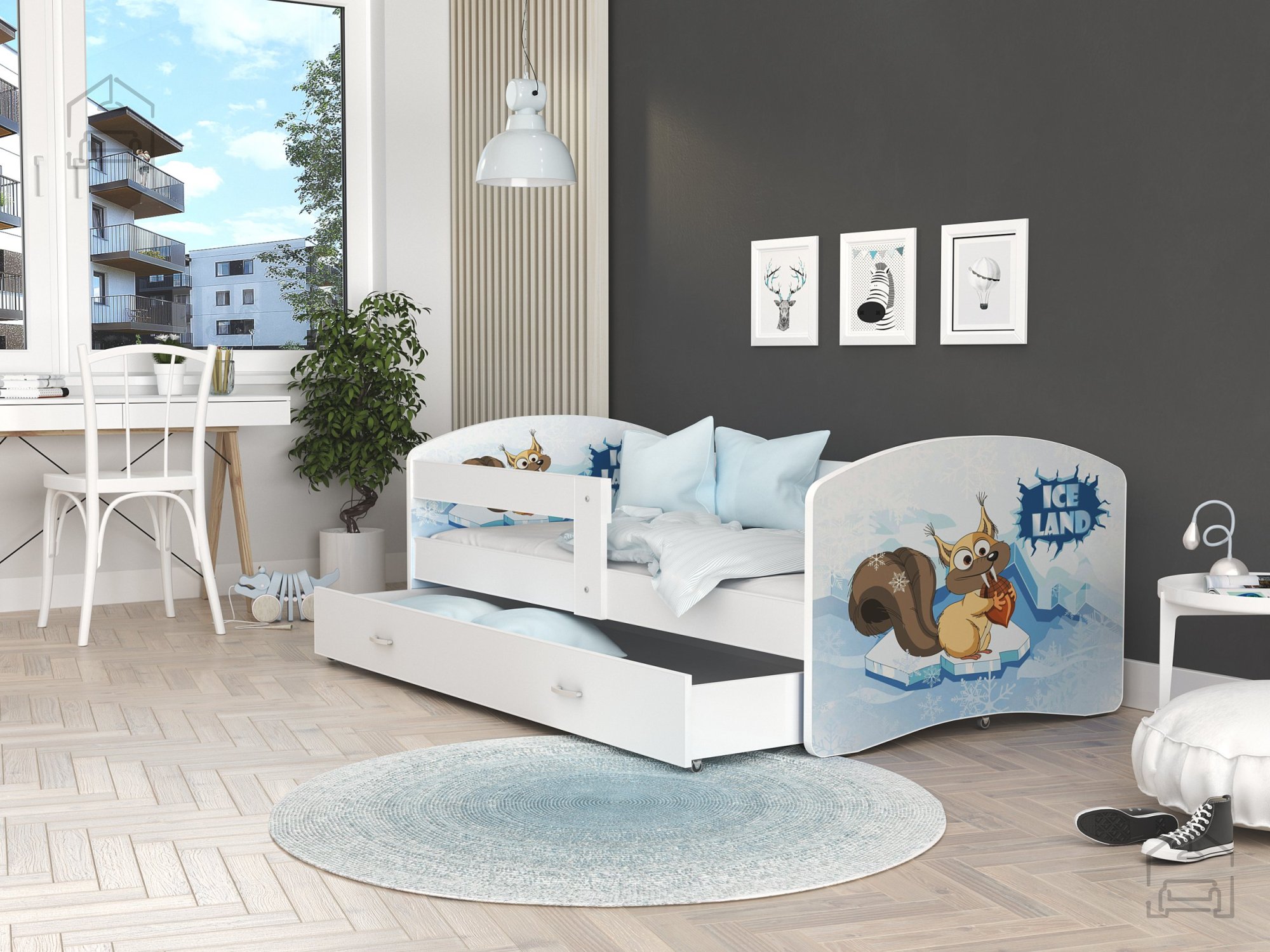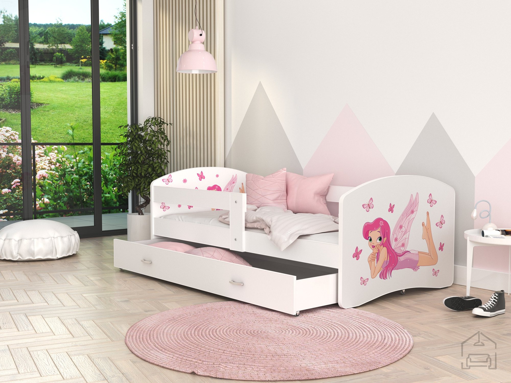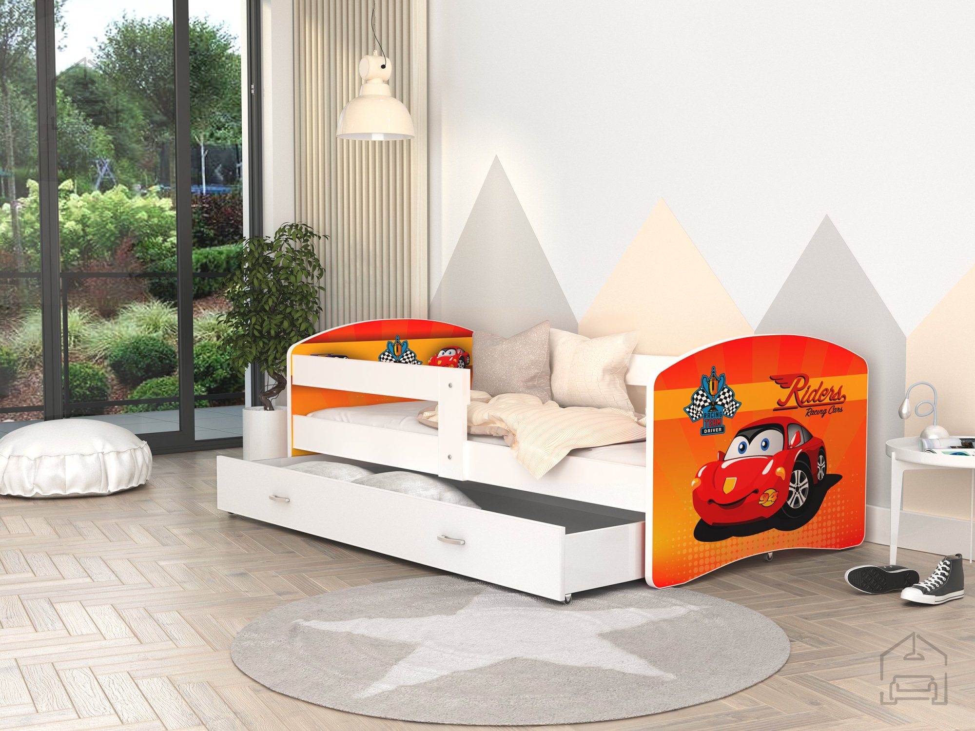 Postelja je narejena tako, da združuje funkcionalnost, modernost in predvsem kakovost. Otroška postelja s predalom za posteljnino in poslikavo. | Ležalna površina: 90x200 cm