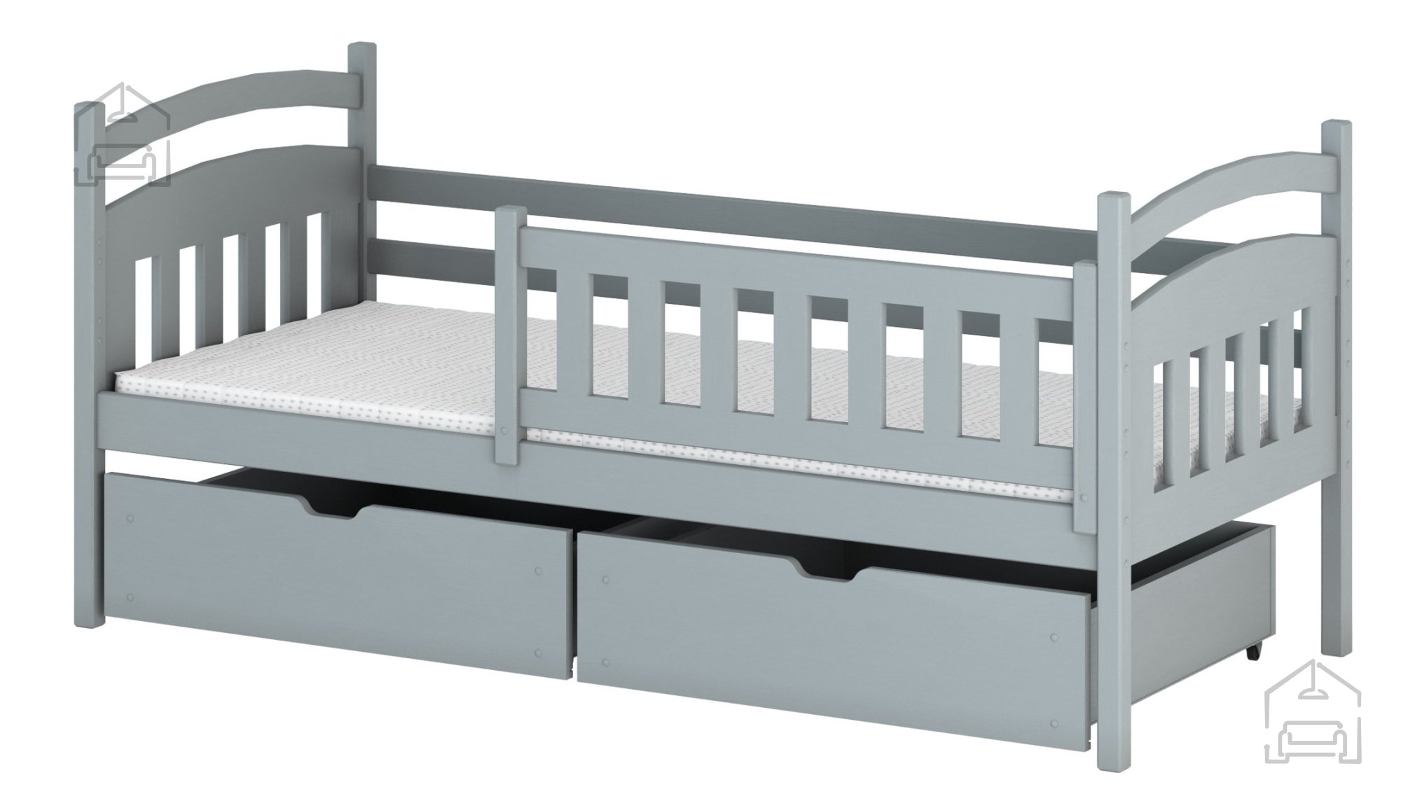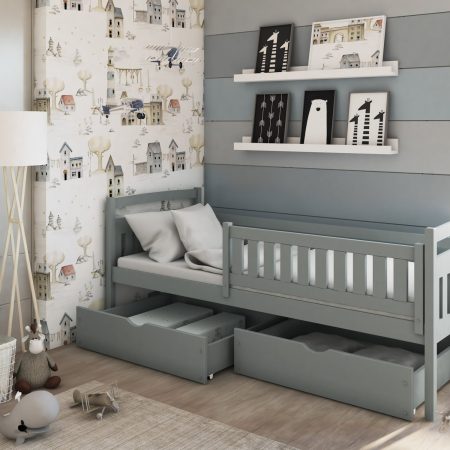 Sodobna otroška postelja z dodatnim ležiščem je namenjena fantom in deklicam. Otroška postelja je narejena tako, da združuje funkcionalnost, modernost in predvsem kakovost in varnost za vašega otroka, ker ima močen okvir iz bora. Praktične dimenzije zagotavljajo, da postelja ne zasede veliko prostora, zato je več prostora za igranje ali učenje. Otroška postelja je narejena iz borovega lesa. Postelja ima prostor za shranjevanje v obliki dveh predalov. | Ležalna površina: 75x180 cm