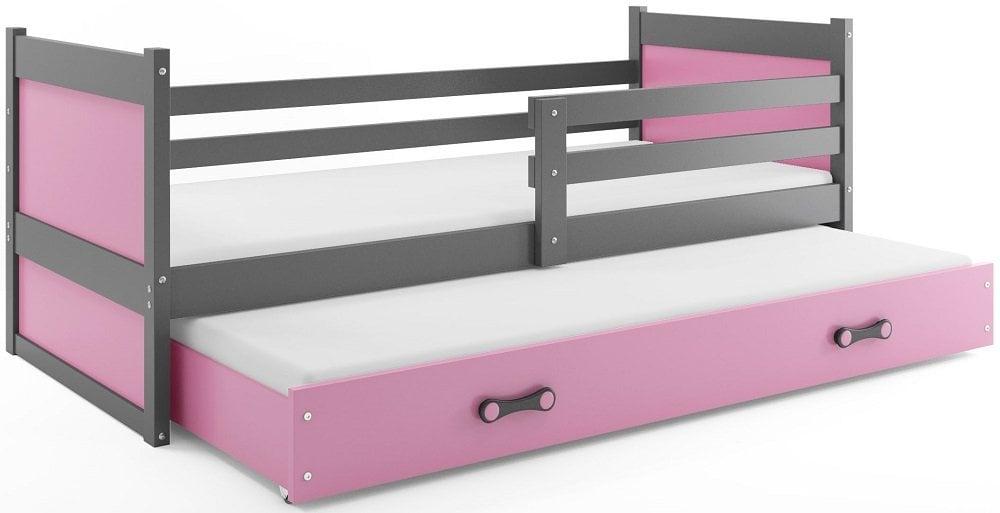 Sodobna otroška postelja z dodatnim ležiščem je namenjena fantom in deklicam. Otroška postelja je narejena tako, da združuje funkcionalnost, modernost in predvsem kakovost in varnost za vašega otroka, ker ima močen okvir iz bora. Praktične dimenzije zagotavljajo, da postelja ne zasede veliko prostora, zato je več prostora za igranje ali učenje. Otroška postelja je narejena iz borovega lesa. Postelja ima prostor za shranjevanje v obliki dveh predalov. | Ležalna površina: 75x180 cm