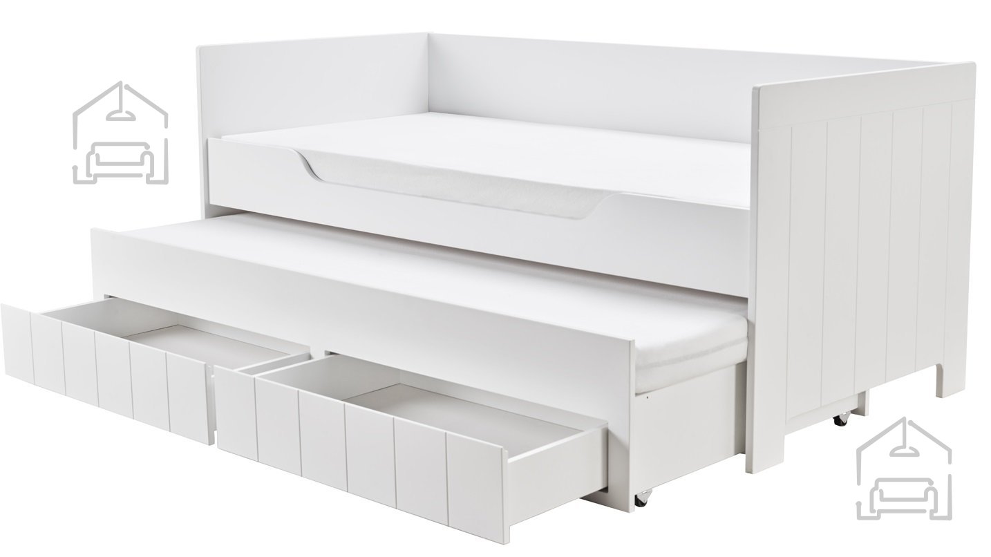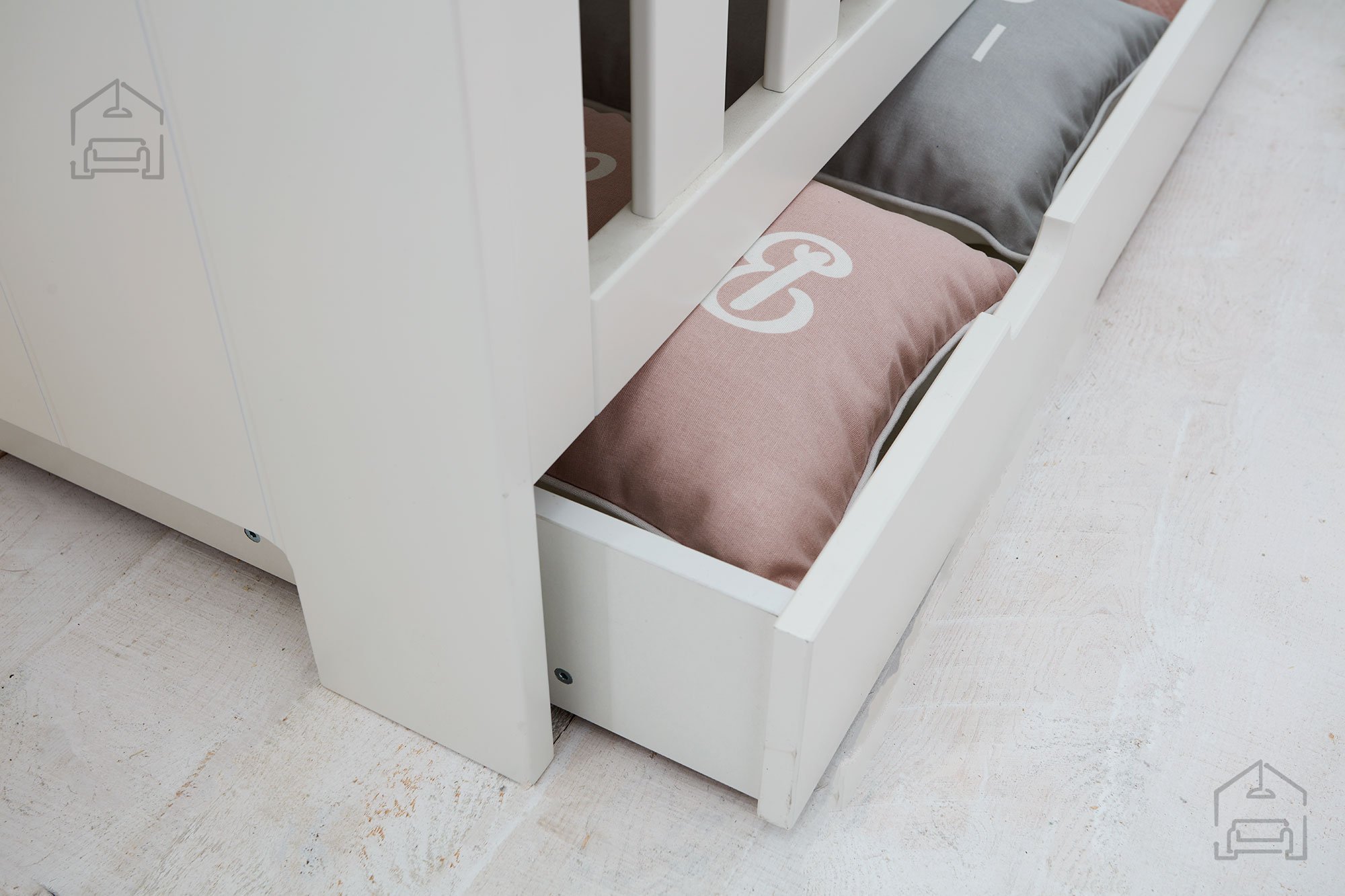 Otroška postelja z dodatnim ležiščem Calmo združuje eleganco in praktičnost ter je popolna izbira za otroško sobo, saj nudi udobno in varno spanje za dve osebi ter dodaten prostor za shranjevanje.