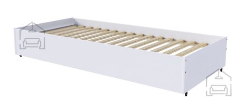 Ležalna površina dodatnega ležišča: 90x192 cm Barva lesa: Bela Barva: Modra, zelena, roza, siva, bela V kompletu je posteljni pod za vzmetnico Vzmetnica je vključena v komplet Dimenzije: 970x650x2060 mm