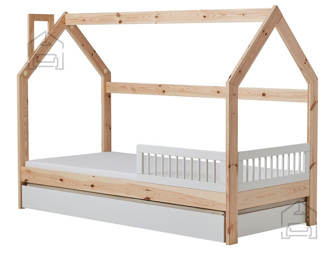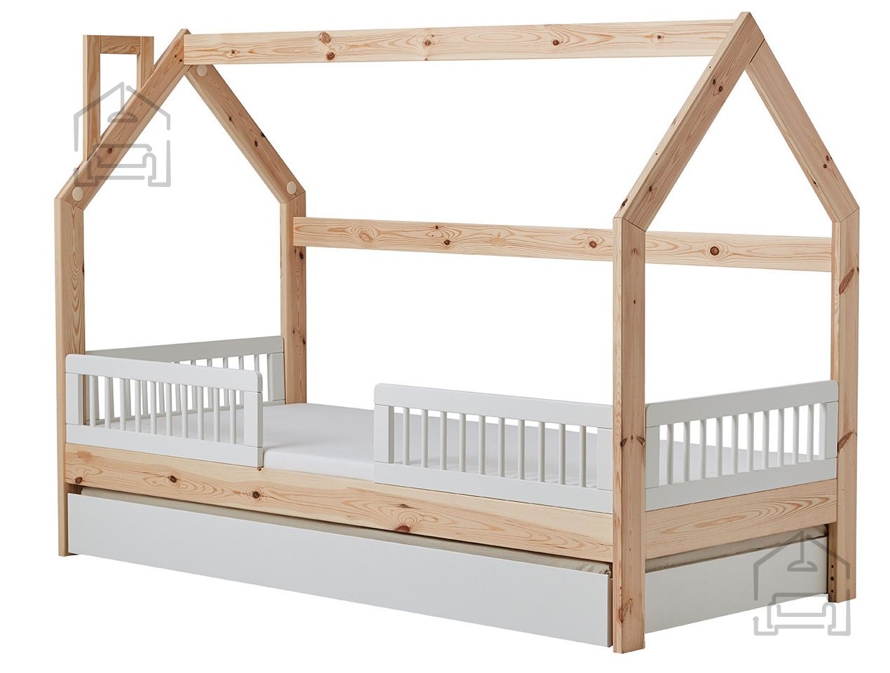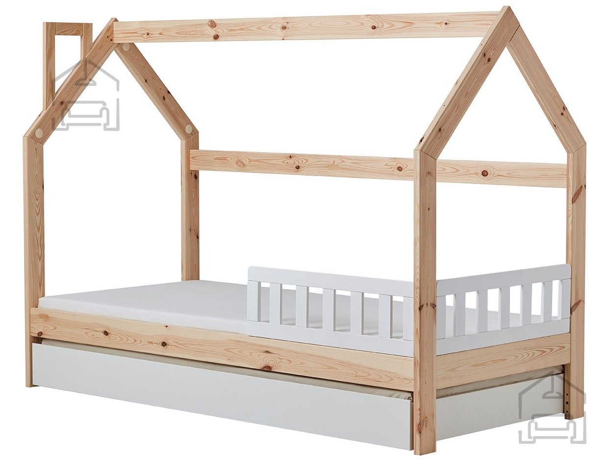 Sodobna otroška postelja z dodatnim ležiščem je namenjena fantom in deklicam. Otroška postelja je narejena tako, da združuje funkcionalnost, modernost in predvsem kakovost in varnost za vašega otroka, ker ima močen okvir iz bora. Praktične dimenzije zagotavljajo, da postelja ne zasede veliko prostora, zato je več prostora za igranje ali učenje. Otroška postelja je narejena iz borovega lesa. Postelja ima prostor za shranjevanje v obliki dveh predalov. | Ležalna površina: 75x180 cm