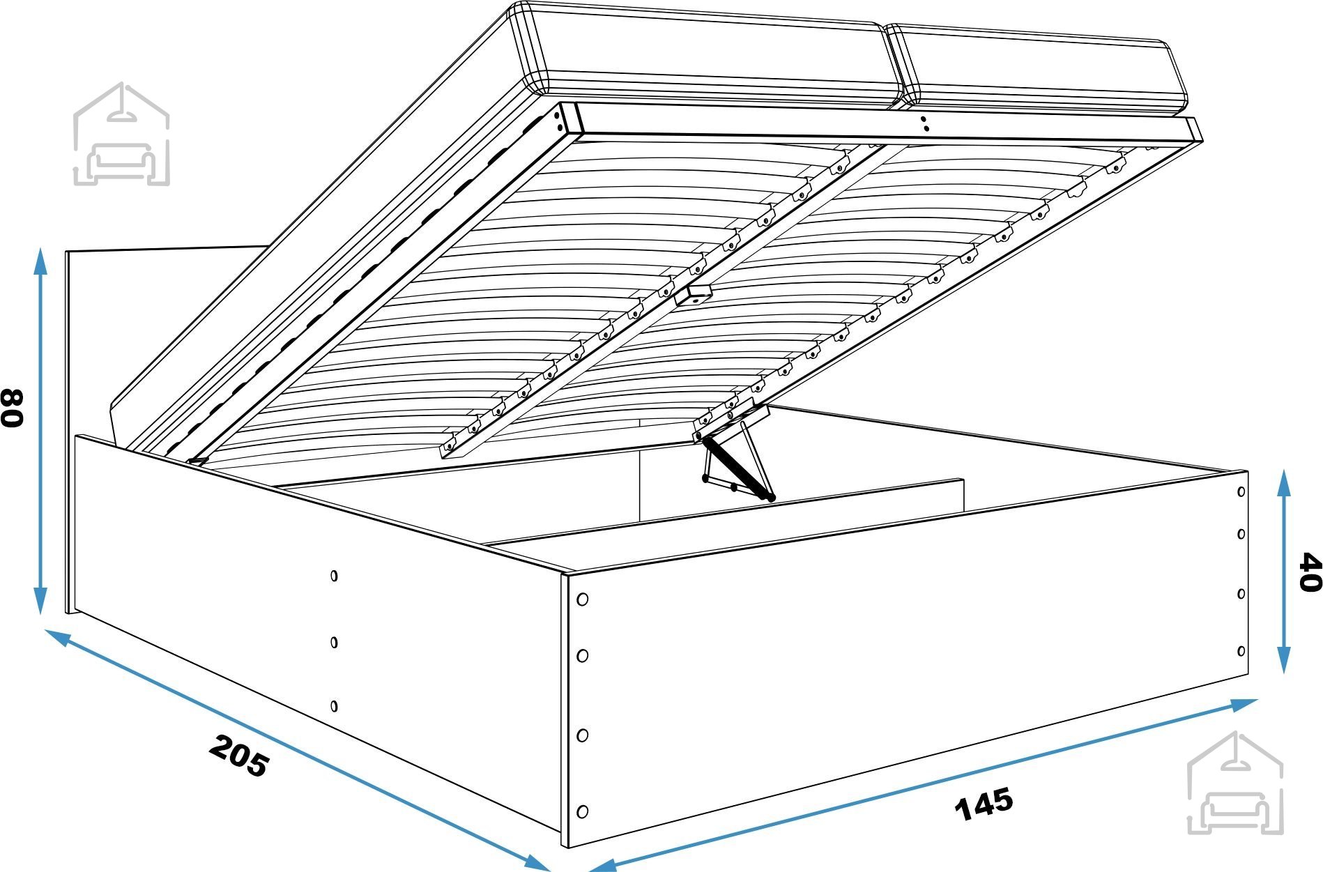 Cena postelje je navedena brez vzmetniceDimenzije: 1450x800x2050 mm 1. Struktura je izdelana iz visokokakovostne laminirane plošče, ki jo odlikuje vzdržljivost in enostavno čiščenje. Zadnji del pod posteljo nima spodnje deske, zato je prostor za shranjevanje le v sprednjem delu postelje. 2. Montažni pribor - hitra in enostavna montaža. 3. Okvir - nameščen na dveh kovinskih vzmetnih strojih, sestavljen iz 30 močnih brezovih letvic za blaženje udarcev, nameščenih na leseno konstrukcijo. 4. Vzmetnica: Brez 5. Zaokroževanje - polmer R2. 6. Nosilnost - 400 kg. | Ležalna površina: 75x180 cm
