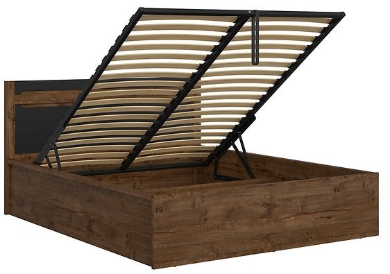 Postelja ima dvignjen okvir na plinskih dvigalih. To omogoča enostaven dostop do spodnjega prostora za posteljnino, kar je zelo praktično za shranjevanje posteljnine in drugih predmetov.