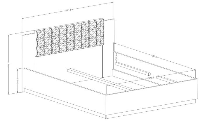 Dimenzije: 1710x1110x2180 mm Oblazinjena postelja Sabrina bo vašo spalnico na eleganten način spremenila v oazo počitka, kamor se boste vedno radi zatekli k počitku. | Material korpusa: Laminirana plošča