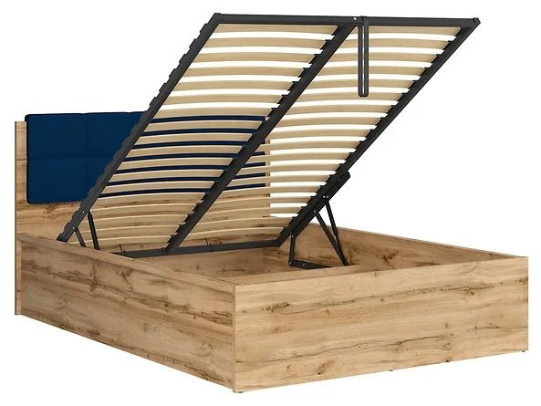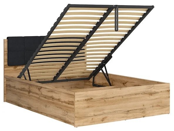 Prostoren predal pod okvirjem postelje ponuja dodaten prostor za shranjevanje. To praktično rešitev lahko uporabite za posteljnino, tekstil in okrasne blazine ter s tem olajšate vzdrževanje reda v sobi.