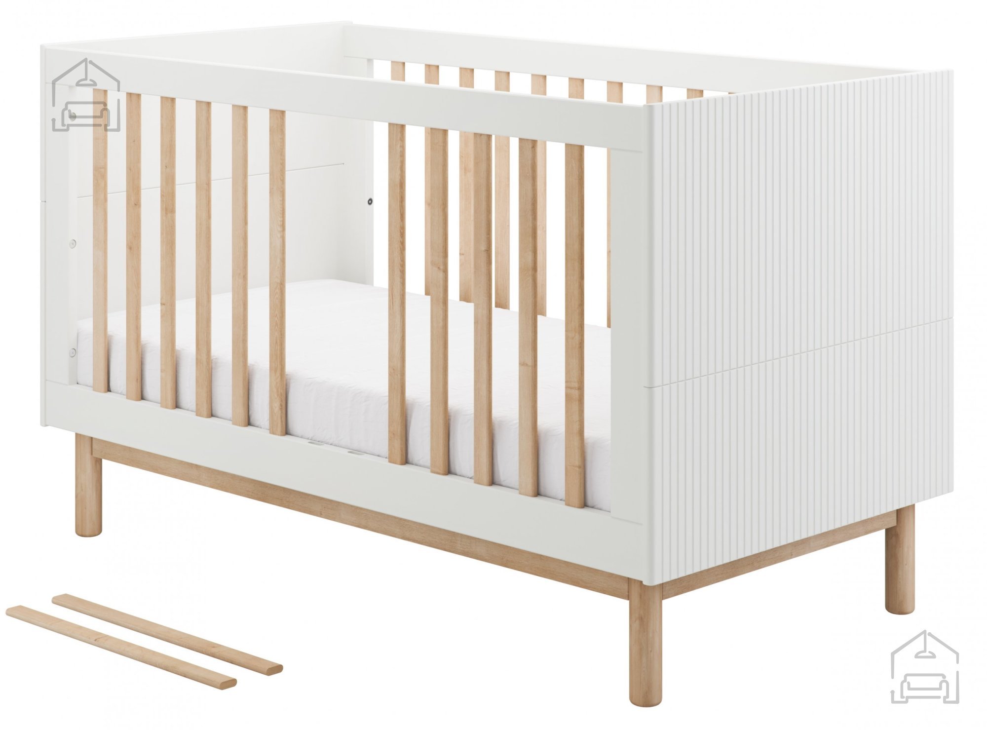 Vzmetnica ni vključena v cenoDimenzije: 752x874x1436 mm Ta stilska posteljica Miloo, zasnovana za vzmetnico velikosti 140x70 cm, ne zagotavlja le udobja in funkcionalnosti, temveč tudi dolgotrajno uporabo. Lahko se pretvori v otroško posteljo, primerno za starejše otroke do teže 40 kg. Tri nastavljive višine vzmetnice in tri odstranljive prečke omogočajo prilagodljivost in praktičnost pri uporabi. Dizajn posteljice poudarja detajle in eleganco – nagubane fronte dodajo značaj in razred, nežno zaobljeni vogali pa zagotavljajo varnost mladih uporabnikov.