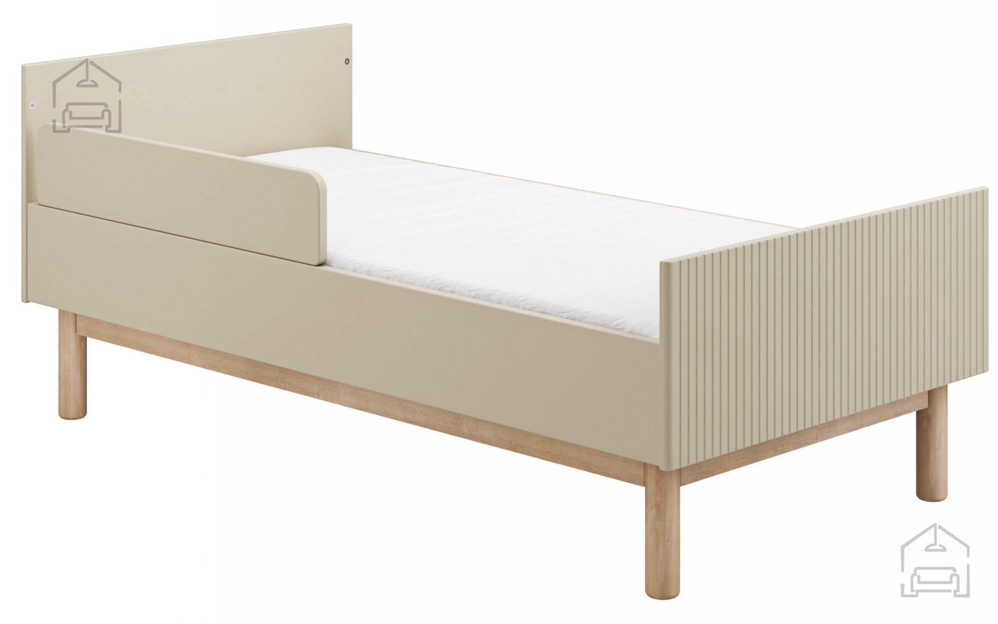 Vzmetnica ni vključena v cenoDimenzije: 752x874x1436 mm Ta stilska posteljica Miloo, zasnovana za vzmetnico velikosti 140x70 cm, ne zagotavlja le udobja in funkcionalnosti, temveč tudi dolgotrajno uporabo. Lahko se pretvori v otroško posteljo, primerno za starejše otroke do teže 40 kg. Tri nastavljive višine vzmetnice in tri odstranljive prečke omogočajo prilagodljivost in praktičnost pri uporabi. Dizajn posteljice poudarja detajle in eleganco – nagubane fronte dodajo značaj in razred, nežno zaobljeni vogali pa zagotavljajo varnost mladih uporabnikov.