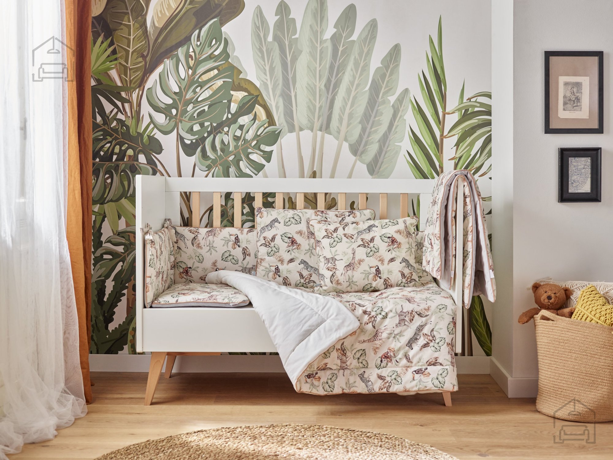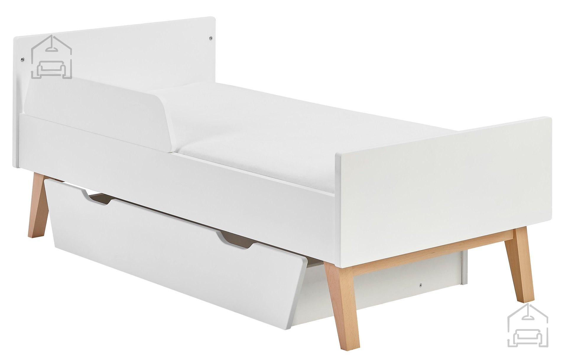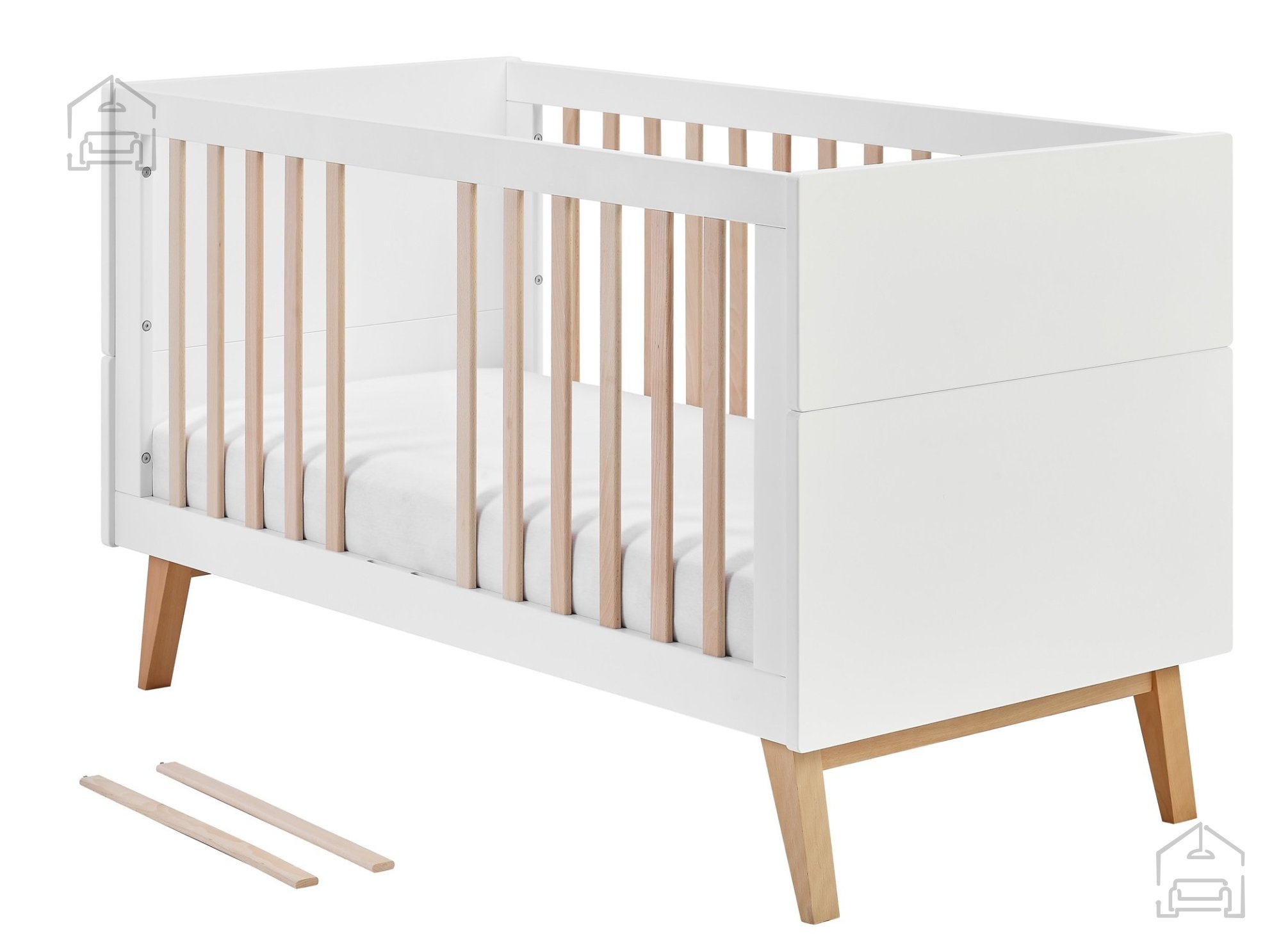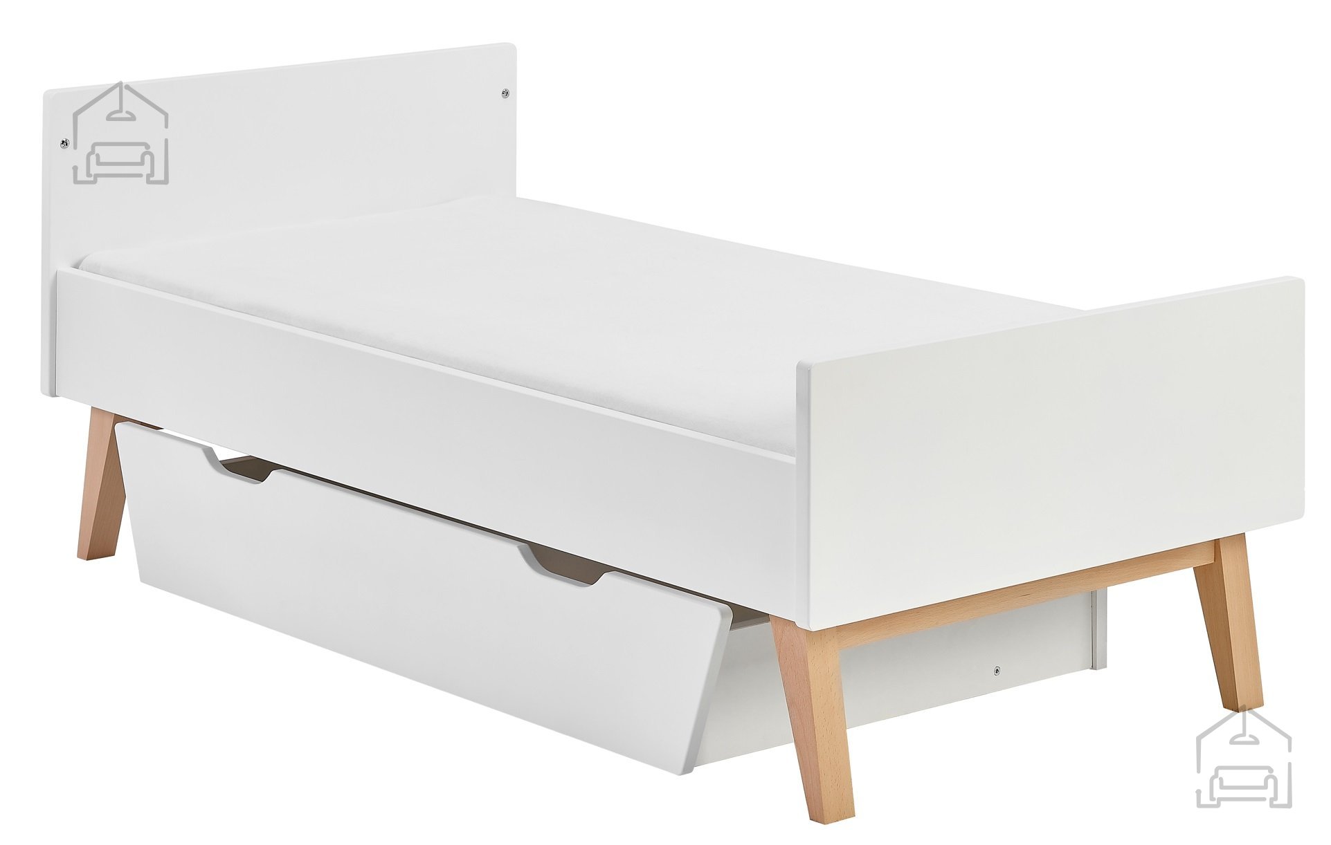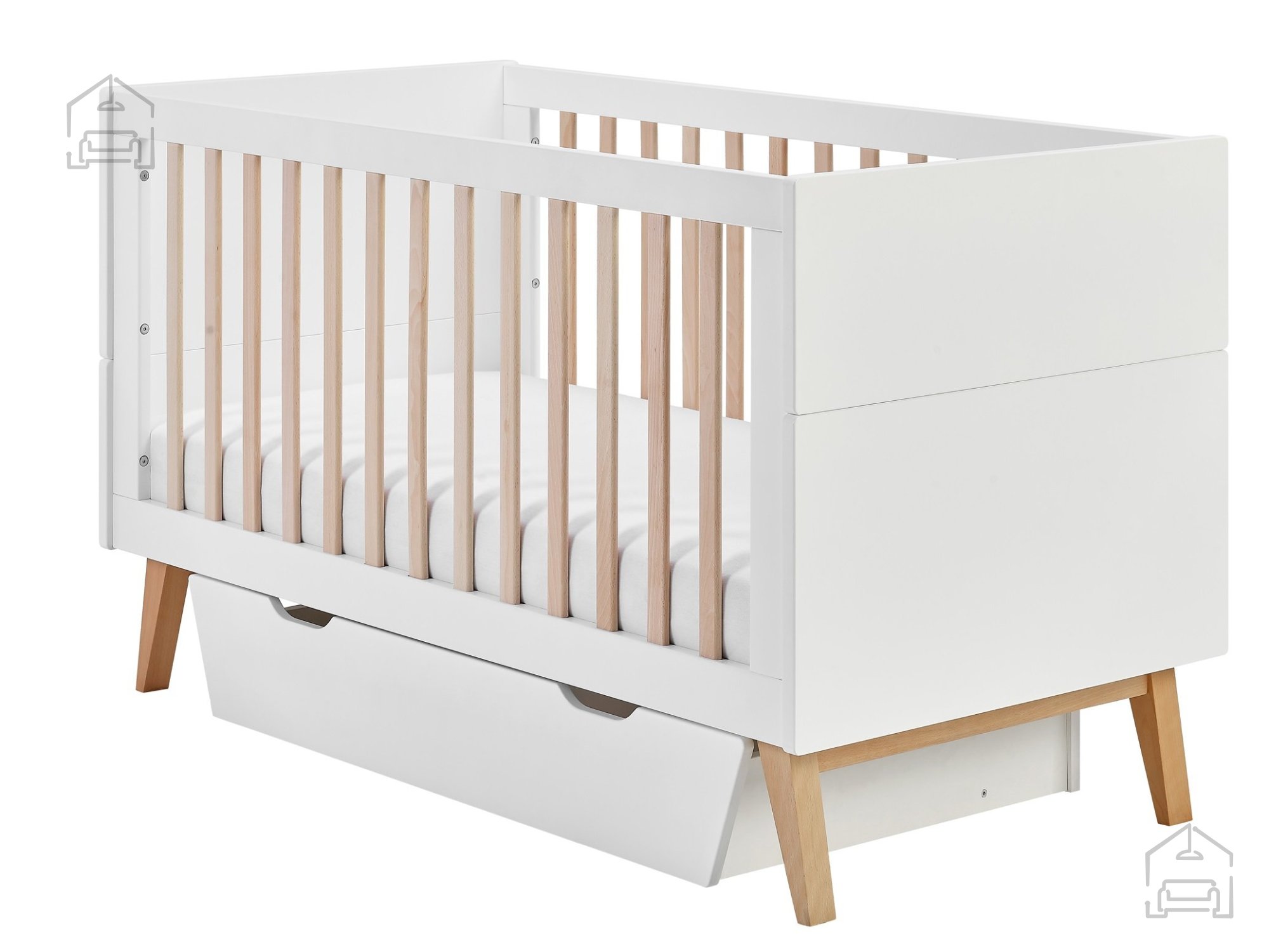 Kolekcija Swing združuje retro slog s sodobno funkcionalnostjo. Nevtralna bela barva in siva v kombinaciji z naravnim lesom daje posteljici eleganten in topel videz, ki se odlično poda v vsak otroški prostor.