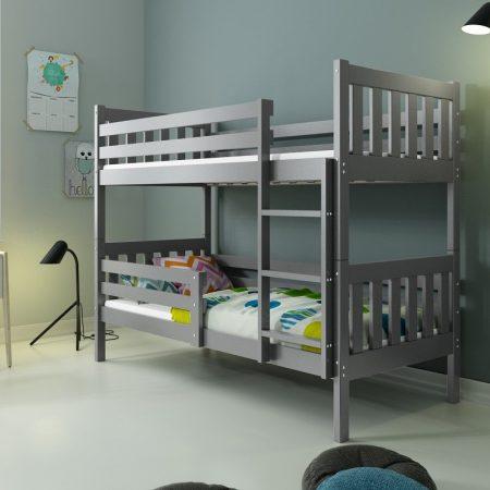 Sodobna otroška postelja z dodatnim ležiščem je namenjena fantom in deklicam. Otroška postelja je narejena tako, da združuje funkcionalnost, modernost in predvsem kakovost in varnost za vašega otroka, ker ima močen okvir iz bora. Praktične dimenzije zagotavljajo, da postelja ne zasede veliko prostora, zato je več prostora za igranje ali učenje. Otroška postelja je narejena iz borovega lesa. Postelja ima prostor za shranjevanje v obliki dveh predalov. | Material: laminirana iverna plošča, 16 mm