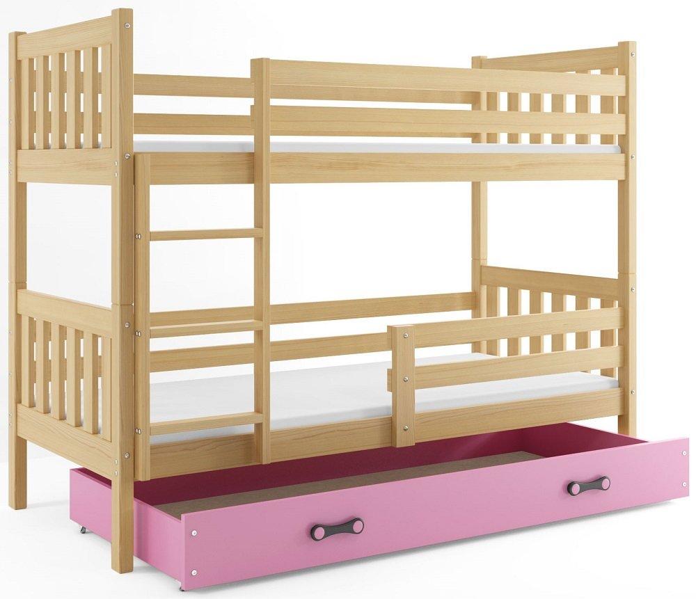 Pograd Carino je še eden izmed kvalitetnih artiklov poljskega proizvajalca BMS Group, ki poskrbi za povsem brezskrben nakup, saj so v komplet in ceno vključena tudi letveni podi in ležišča iz pene. Izjemna zasnova pogradov BMS Group tudi pri pogradu Carino omogoča, da ga kasneje, ko se otroci preselijo vsak v svojo sobo, razmontirate v dve ločeni postelji. Tako vam ne bo treba kupovati novih, ko bodo otroci večji in bo nastala potreba po dveh ločenih posteljah. Pograd Carino ima na voljo še dodatno ležišče in je primeren tudi za bivanje dveh otrok naenkrat v isti sobi.