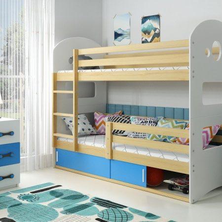 Sodobna otroška postelja z dodatnim ležiščem je namenjena fantom in deklicam. Otroška postelja je narejena tako, da združuje funkcionalnost, modernost in predvsem kakovost in varnost za vašega otroka, ker ima močen okvir iz bora. Praktične dimenzije zagotavljajo, da postelja ne zasede veliko prostora, zato je več prostora za igranje ali učenje. Otroška postelja je narejena iz borovega lesa. Postelja ima prostor za shranjevanje v obliki dveh predalov. | Material: MDF
