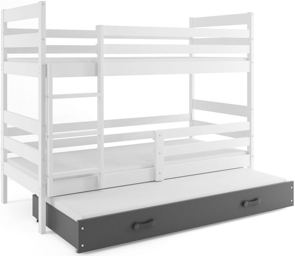 Sodobna otroška postelja z dodatnim ležiščem je namenjena fantom in deklicam. Otroška postelja je narejena tako, da združuje funkcionalnost, modernost in predvsem kakovost in varnost za vašega otroka, ker ima močen okvir iz bora. Praktične dimenzije zagotavljajo, da postelja ne zasede veliko prostora, zato je več prostora za igranje ali učenje. Otroška postelja je narejena iz borovega lesa. Postelja ima prostor za shranjevanje v obliki dveh predalov. | Ležalna površina: 80x160 cm