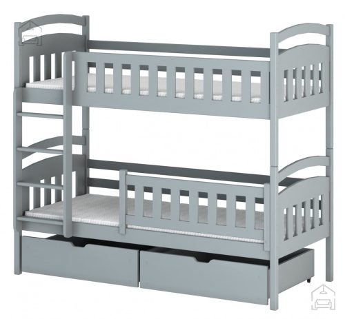 Sodobna otroška postelja z dodatnim ležiščem je namenjena fantom in deklicam. Otroška postelja je narejena tako, da združuje funkcionalnost, modernost in predvsem kakovost in varnost za vašega otroka, ker ima močen okvir iz bora. Praktične dimenzije zagotavljajo, da postelja ne zasede veliko prostora, zato je več prostora za igranje ali učenje. Otroška postelja je narejena iz borovega lesa. Postelja ima prostor za shranjevanje v obliki dveh predalov. |