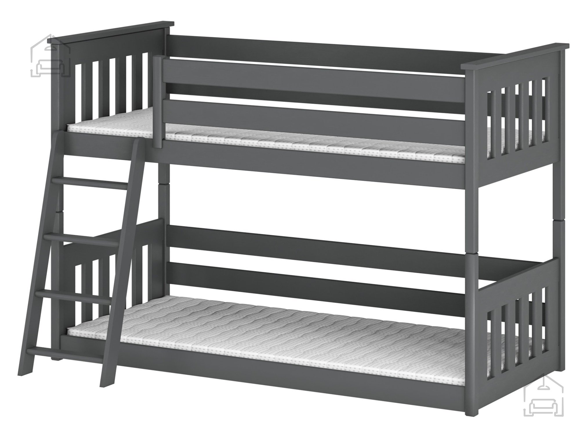 Prisotnost poševne lestve pri pogradu Kevin omogoča prilagodljivo postavitev v otroški sobi. Ta oblika lestve omogoča enostaven dostop in uporabo postelje, ne glede na postavitev prostora ali razporeditev pohištva.