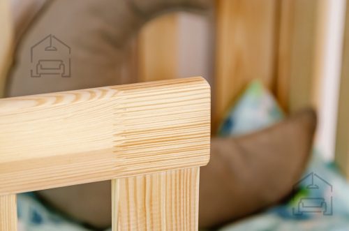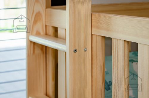 - Ogrodje pograda je izdelano iz borovega lesa, kar zagotavlja odpornost in varnost. Uporabljena antialergijska barva na vodni osnovi dodatno zagotavlja varnost otroka.