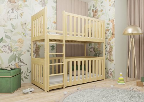 Sodobna otroška postelja z dodatnim ležiščem je namenjena fantom in deklicam. Otroška postelja je narejena tako, da združuje funkcionalnost, modernost in predvsem kakovost in varnost za vašega otroka, ker ima močen okvir iz bora. Praktične dimenzije zagotavljajo, da postelja ne zasede veliko prostora, zato je več prostora za igranje ali učenje. Otroška postelja je narejena iz borovega lesa. Postelja ima prostor za shranjevanje v obliki dveh predalov. | Ležalna površina: 75x180 cm