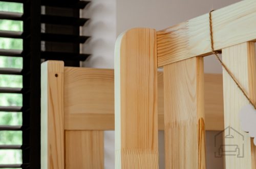 • Ogrodje pograda je izdelano iz borovega lesa, kar zagotavlja odpornost in varnost. Uporabljena antialergijska barva na vodni osnovi dodatno zagotavlja varnost otroka.