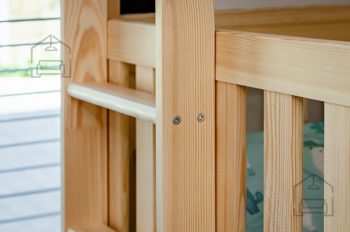 Sodobna otroška postelja z dodatnim ležiščem je namenjena fantom in deklicam. Otroška postelja je narejena tako, da združuje funkcionalnost, modernost in predvsem kakovost in varnost za vašega otroka, ker ima močen okvir iz bora. Praktične dimenzije zagotavljajo, da postelja ne zasede veliko prostora, zato je več prostora za igranje ali učenje. Otroška postelja je narejena iz borovega lesa. Postelja ima prostor za shranjevanje v obliki dveh predalov.