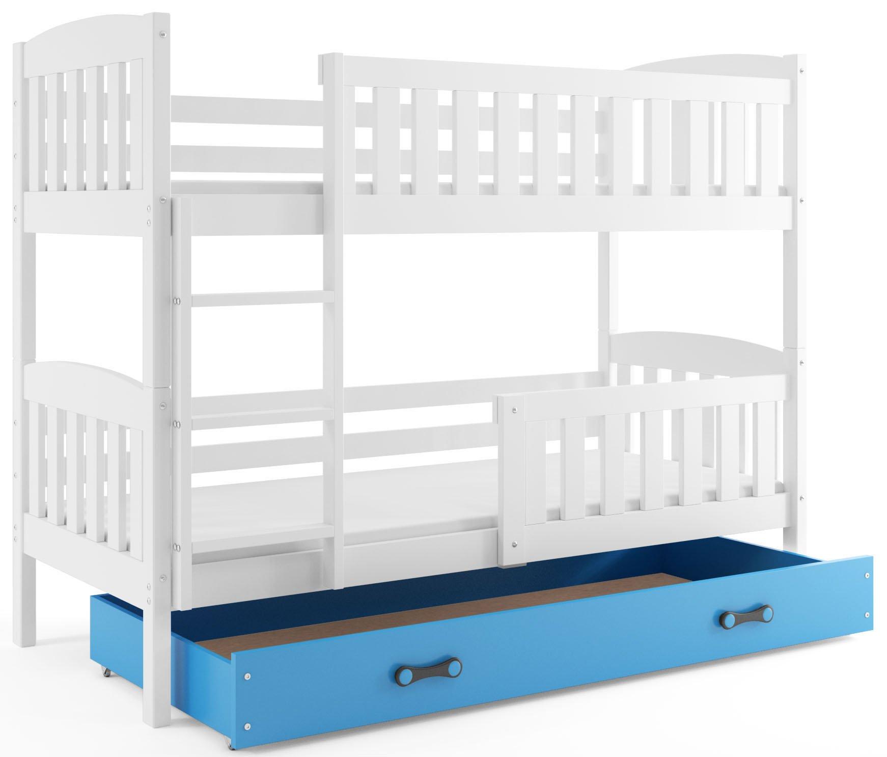 Sodobna otroška postelja z dodatnim ležiščem je namenjena fantom in deklicam. Otroška postelja je narejena tako, da združuje funkcionalnost, modernost in predvsem kakovost in varnost za vašega otroka, ker ima močen okvir iz bora. Praktične dimenzije zagotavljajo, da postelja ne zasede veliko prostora, zato je več prostora za igranje ali učenje. Otroška postelja je narejena iz borovega lesa. Postelja ima prostor za shranjevanje v obliki dveh predalov. | Material: MDF
