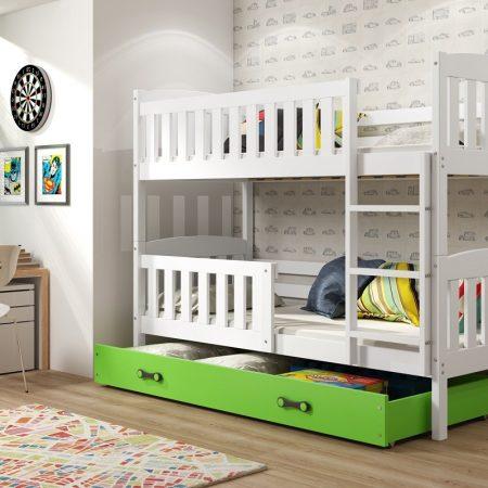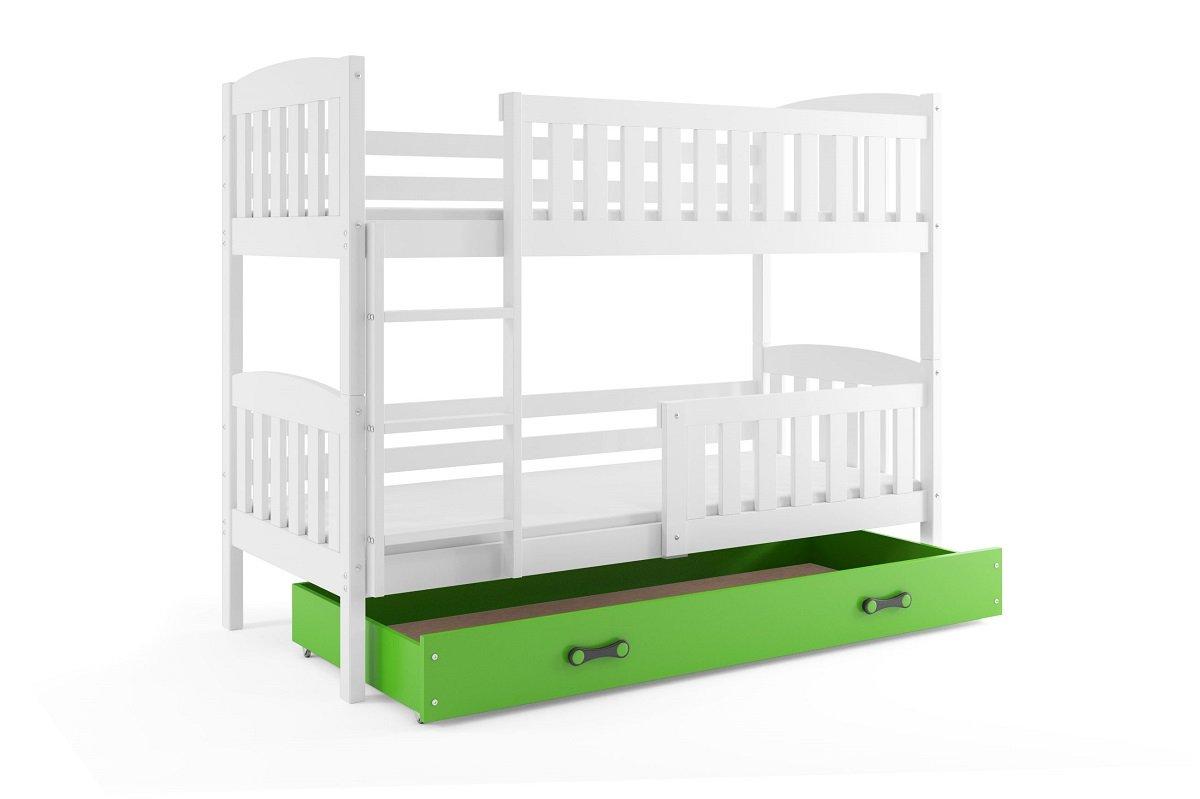 Sodobna otroška postelja z dodatnim ležiščem je namenjena fantom in deklicam. Otroška postelja je narejena tako, da združuje funkcionalnost, modernost in predvsem kakovost in varnost za vašega otroka, ker ima močen okvir iz bora. Praktične dimenzije zagotavljajo, da postelja ne zasede veliko prostora, zato je več prostora za igranje ali učenje. Otroška postelja je narejena iz borovega lesa. Postelja ima prostor za shranjevanje v obliki dveh predalov. | Material: Iveral