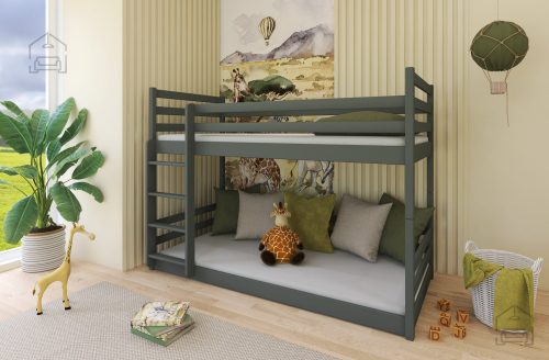 Sodobna otroška postelja z dodatnim ležiščem je namenjena fantom in deklicam. Otroška postelja je narejena tako, da združuje funkcionalnost, modernost in predvsem kakovost in varnost za vašega otroka, ker ima močen okvir iz bora. Praktične dimenzije zagotavljajo, da postelja ne zasede veliko prostora, zato je več prostora za igranje ali učenje. Otroška postelja je narejena iz borovega lesa. Postelja ima prostor za shranjevanje v obliki dveh predalov.