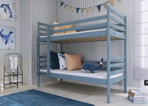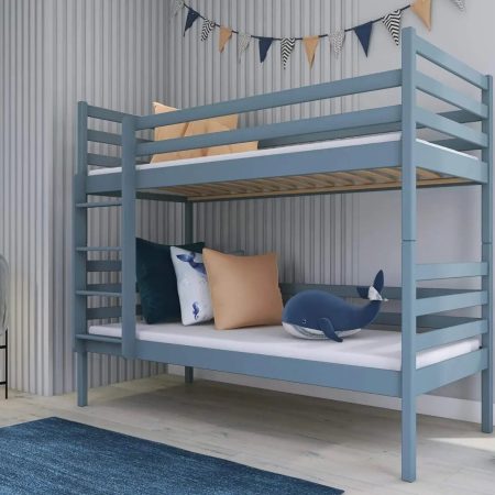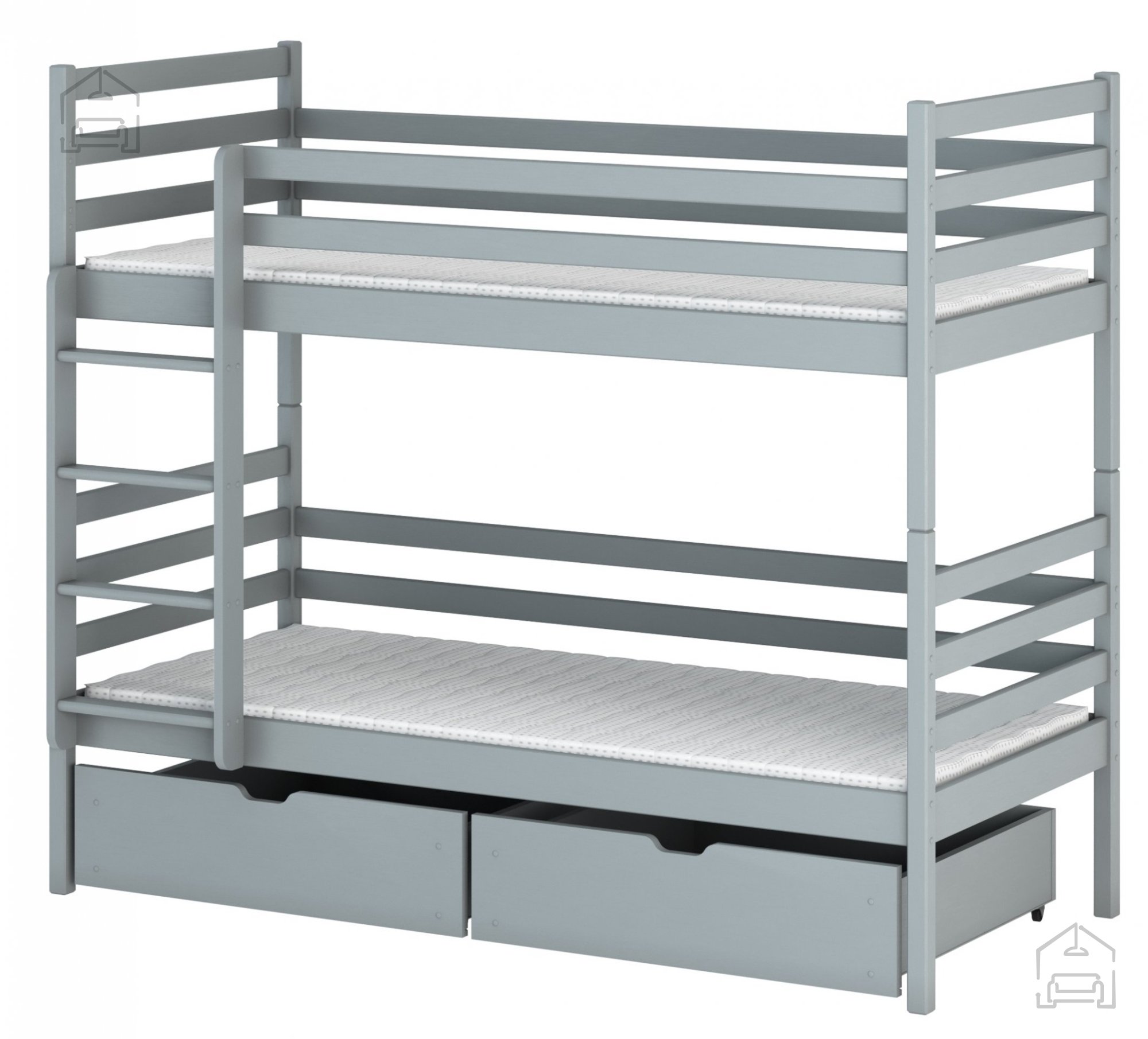 Sodobna otroška postelja z dodatnim ležiščem je namenjena fantom in deklicam. Otroška postelja je narejena tako, da združuje funkcionalnost, modernost in predvsem kakovost in varnost za vašega otroka, ker ima močen okvir iz bora. Praktične dimenzije zagotavljajo, da postelja ne zasede veliko prostora, zato je več prostora za igranje ali učenje. Otroška postelja je narejena iz borovega lesa. Postelja ima prostor za shranjevanje v obliki dveh predalov. | Material: tkanina/masiven les