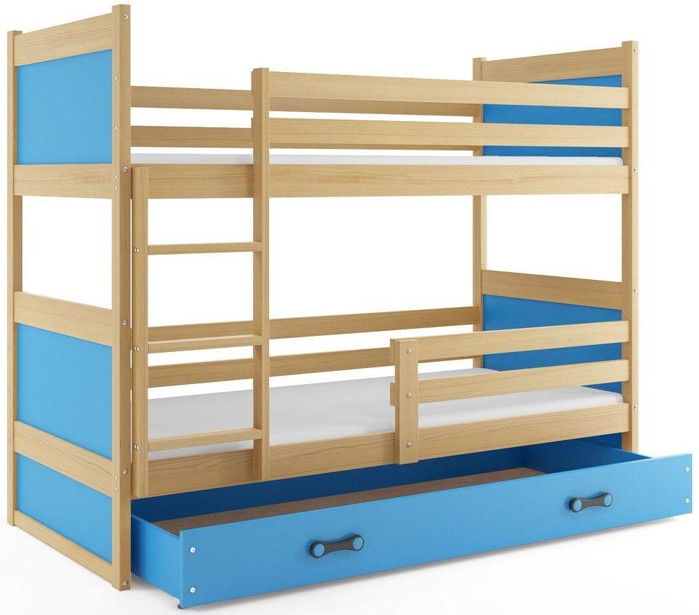 Sodobna otroška postelja z dodatnim ležiščem je namenjena fantom in deklicam. Otroška postelja je narejena tako, da združuje funkcionalnost, modernost in predvsem kakovost in varnost za vašega otroka, ker ima močen okvir iz bora. Praktične dimenzije zagotavljajo, da postelja ne zasede veliko prostora, zato je več prostora za igranje ali učenje. Otroška postelja je narejena iz borovega lesa. Postelja ima prostor za shranjevanje v obliki dveh predalov.