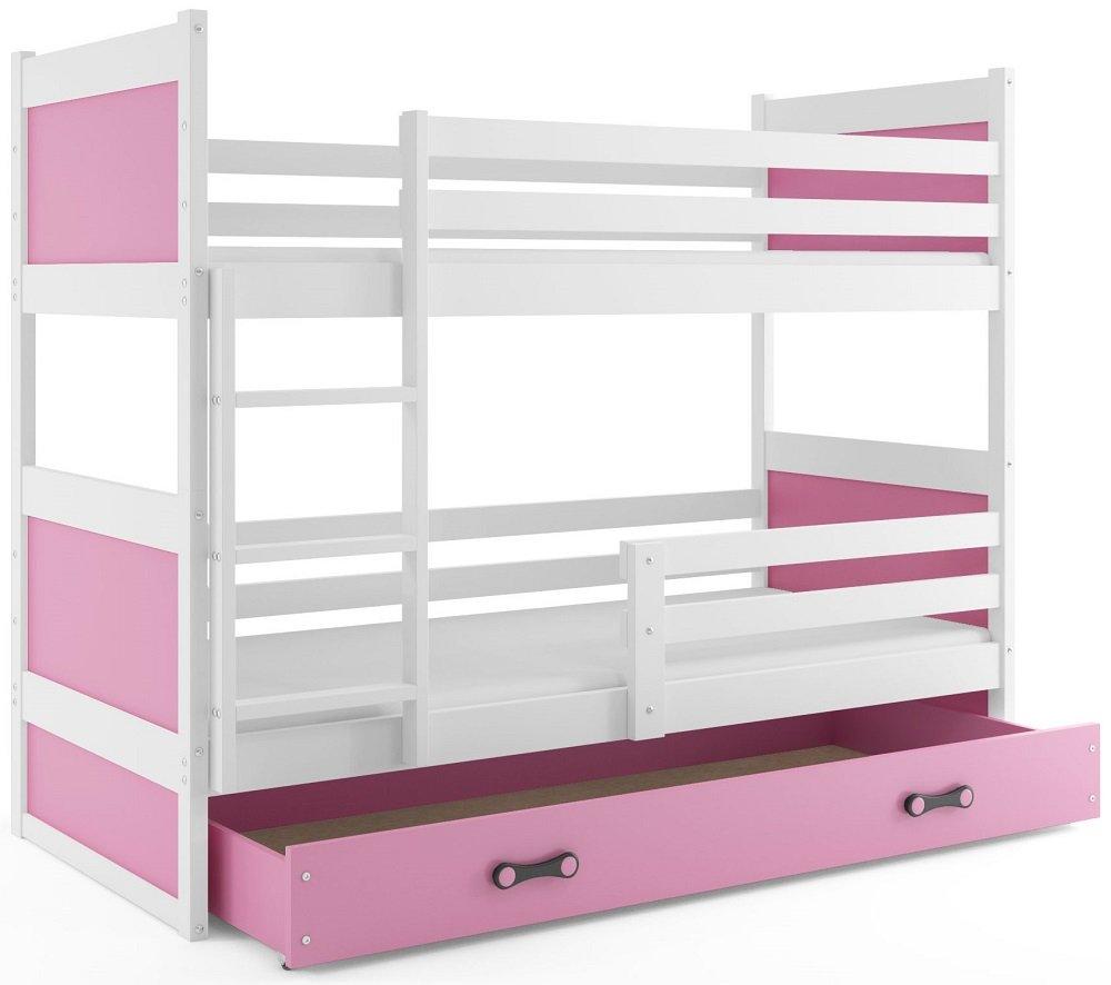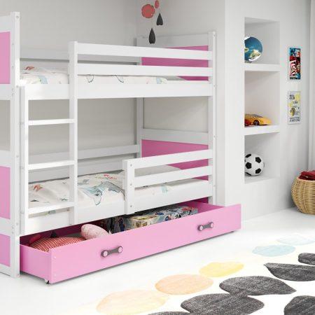 Sodobna otroška postelja z dodatnim ležiščem je namenjena fantom in deklicam. Otroška postelja je narejena tako, da združuje funkcionalnost, modernost in predvsem kakovost in varnost za vašega otroka, ker ima močen okvir iz bora. Praktične dimenzije zagotavljajo, da postelja ne zasede veliko prostora, zato je več prostora za igranje ali učenje. Otroška postelja je narejena iz borovega lesa. Postelja ima prostor za shranjevanje v obliki dveh predalov. | Material: MDF