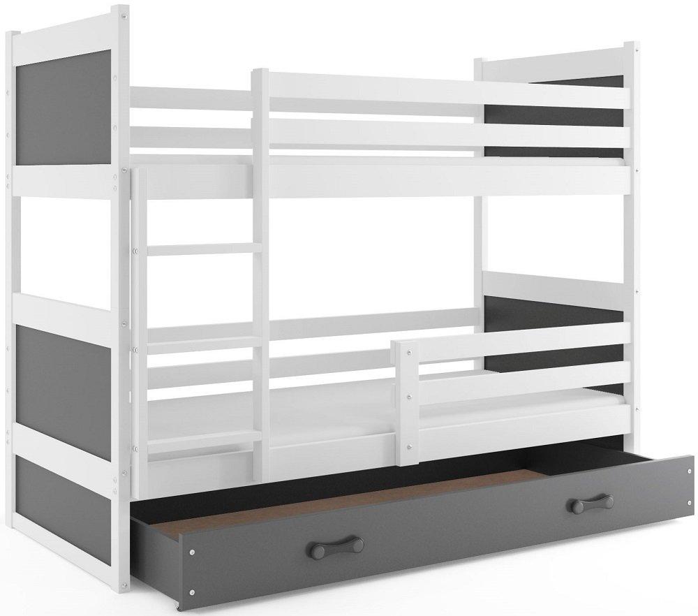 Sodobna otroška postelja z dodatnim ležiščem je namenjena fantom in deklicam. Otroška postelja je narejena tako, da združuje funkcionalnost, modernost in predvsem kakovost in varnost za vašega otroka, ker ima močen okvir iz bora. Praktične dimenzije zagotavljajo, da postelja ne zasede veliko prostora, zato je več prostora za igranje ali učenje. Otroška postelja je narejena iz borovega lesa. Postelja ima prostor za shranjevanje v obliki dveh predalov.