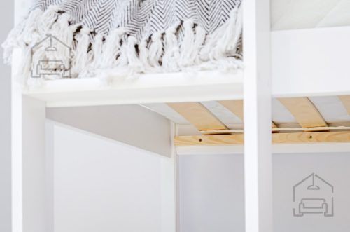 Postelja je narejena iz MDF. V kompletu prejmete letveno dno.