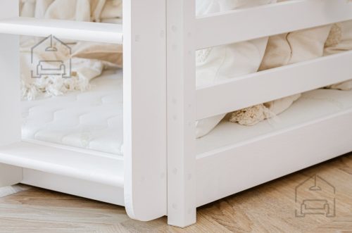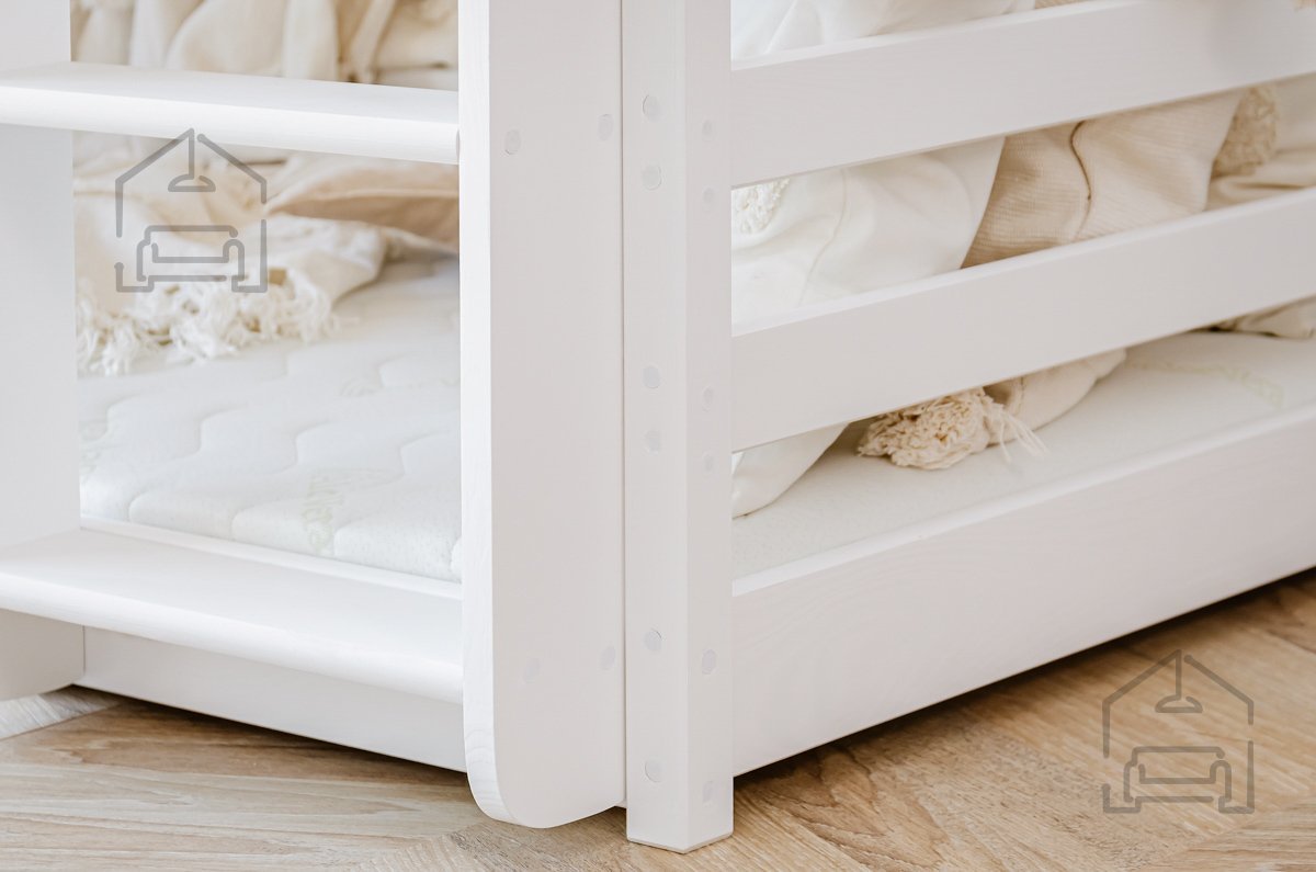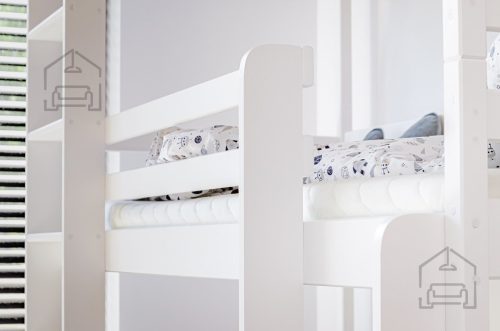 Sodobna otroška postelja z dodatnim ležiščem je namenjena fantom in deklicam. Otroška postelja je narejena tako, da združuje funkcionalnost, modernost in predvsem kakovost in varnost za vašega otroka, ker ima močen okvir iz bora. Praktične dimenzije zagotavljajo, da postelja ne zasede veliko prostora, zato je več prostora za igranje ali učenje. Otroška postelja je narejena iz borovega lesa. Postelja ima prostor za shranjevanje v obliki dveh predalov.