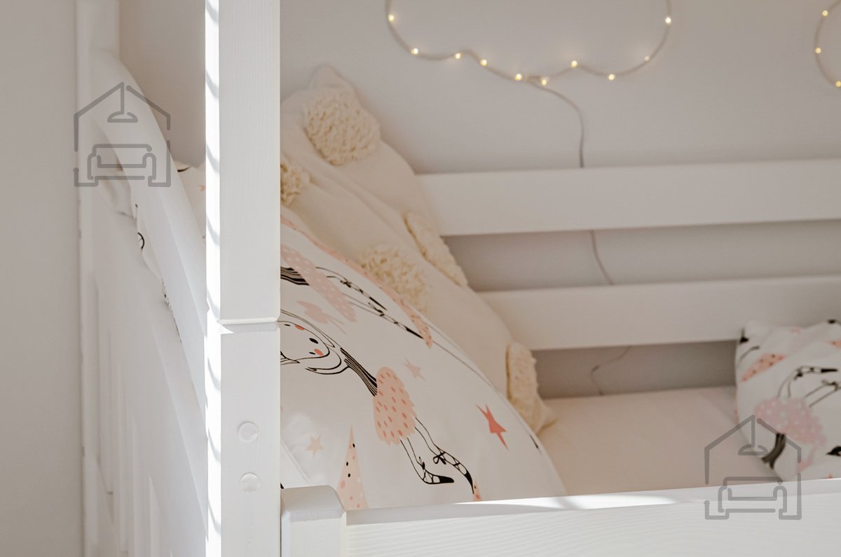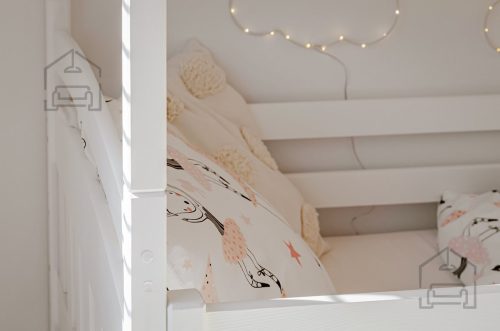 • Visoke ograje pograda Blanka zagotavljajo ne le varnost, temveč tudi občutek zaščite otroka med spanjem. Široke stopnice na lestvi omogočajo stabilen in varni dostop do zgornje postelje, celo za najmlajše raziskovalce.