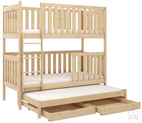Sodobna otroška postelja z dodatnim ležiščem je namenjena fantom in deklicam. Otroška postelja je narejena tako, da združuje funkcionalnost, modernost in predvsem kakovost in varnost za vašega otroka, ker ima močen okvir iz bora. Praktične dimenzije zagotavljajo, da postelja ne zasede veliko prostora, zato je več prostora za igranje ali učenje. Otroška postelja je narejena iz borovega lesa. Postelja ima prostor za shranjevanje v obliki dveh predalov. | Ležalna površina: 80x160 cm