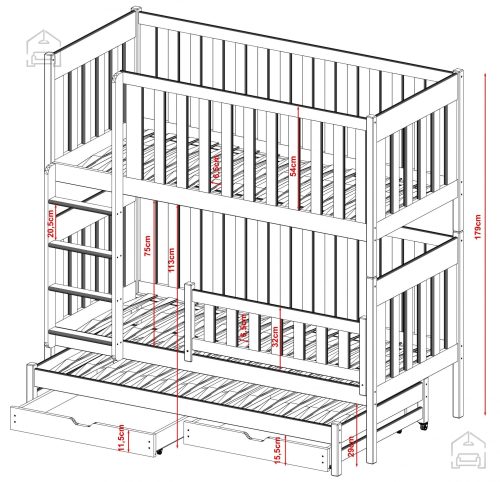 Prostorska organizacija: pograd Emilka je opremljen s prostornimi predali, ki se nahajajo pod raztegljivo ploščadjo. Ti predali so odlični za shranjevanje posteljnine, igrač in sezonskih oblačil, kar omogoča urejeno in organizirano otroško sobo brez dodatnega pohištva.