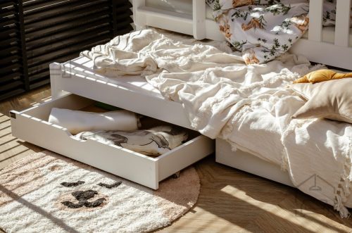 Prostorska organizacija: pograd Emilka je opremljen s prostornimi predali, ki se nahajajo pod raztegljivo ploščadjo. Ti predali so odlični za shranjevanje posteljnine, igrač in sezonskih oblačil, kar omogoča urejeno in organizirano otroško sobo brez dodatnega pohištva.