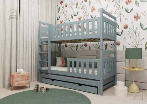 Sodobna otroška postelja z dodatnim ležiščem je namenjena fantom in deklicam. Otroška postelja je narejena tako, da združuje funkcionalnost, modernost in predvsem kakovost in varnost za vašega otroka, ker ima močen okvir iz bora. Praktične dimenzije zagotavljajo, da postelja ne zasede veliko prostora, zato je več prostora za igranje ali učenje. Otroška postelja je narejena iz borovega lesa. Postelja ima prostor za shranjevanje v obliki dveh predalov. | Material: tkanina, les