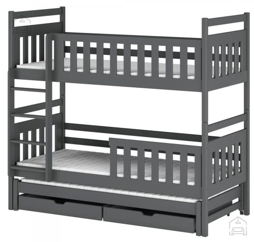 Sodobna postelja z dodatnim ležiščem je namenjena fantom in puncam. Narejena je tako, da združuje funkcionalnost, modernost in predvsem kakovost in varnost za vašega otroka, ker ima močen okvir iz bora. Praktične dimenzije zagotavljajo, da postelja ne zasede veliko prostora, zato je več prostora za igranje ali učenje. Otroška postelja je narejena iz borovega lesa. Postelja ima prostor za shranjevanje v obliki dveh predalov. | Ležalna površina: 160x200 cm