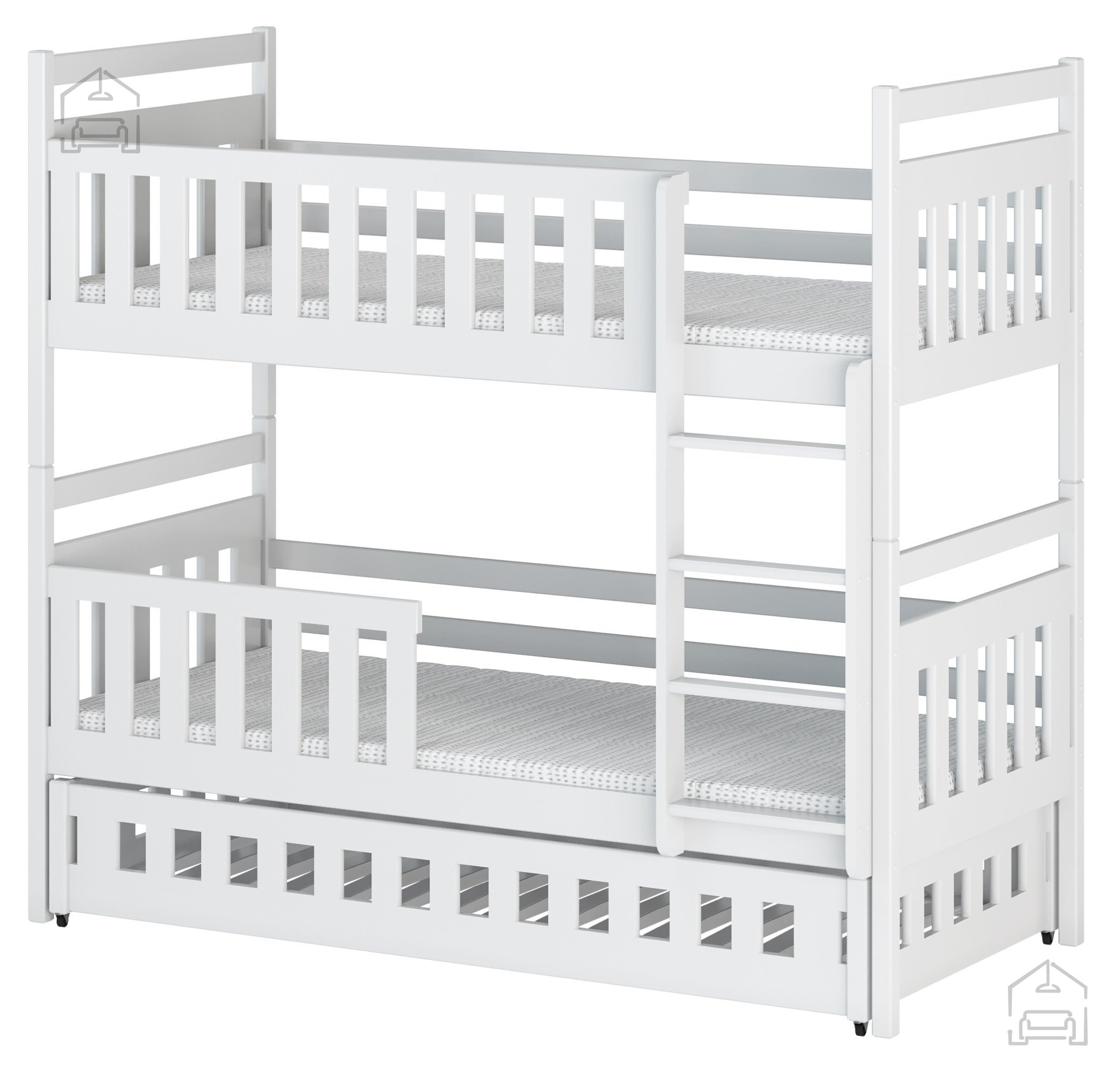 Vzmetnica ni vključena v cenoDimenzije: 870x1710x1880 mm Pograd z dodatnim ležiščem Oliwia je inovativen kos pohištva, ki združuje dve rešitvi in omogoča sprejem treh otrok.Vključuje sorodsko posteljo Oliwia, ki ima skrito, izvlečno, samostojno tretje ležišče v spodnjem delu. Pri načrtovanju otroških sob, kjer si bratje in sestre delijo prostor, je vsak centimeter pomemben, zato je sorodska postelja Oliwia odlična izbira. To je idealna rešitev, kadar vaši otroci povabijo prijatelje ali ko sorodniki pridejo na obisk in želijo ostati pri vas.