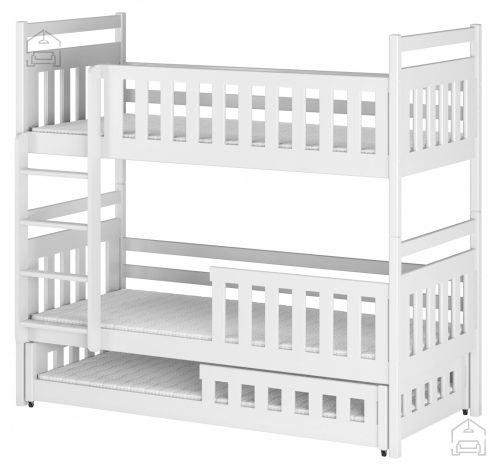 Vzmetnica ni vključena v cenoDimenzije: 870x1710x2080 mm Pograd z dodatnim ležiščem Oliwia je inovativen kos pohištva, ki združuje dve rešitvi in omogoča sprejem treh otrok.Vključuje sorodsko posteljo Oliwia, ki ima skrito, izvlečno, samostojno tretje ležišče v spodnjem delu. Pri načrtovanju otroških sob, kjer si bratje in sestre delijo prostor, je vsak centimeter pomemben, zato je sorodska postelja Oliwia odlična izbira. To je idealna rešitev, kadar vaši otroci povabijo prijatelje ali ko sorodniki pridejo na obisk in želijo ostati pri vas.
