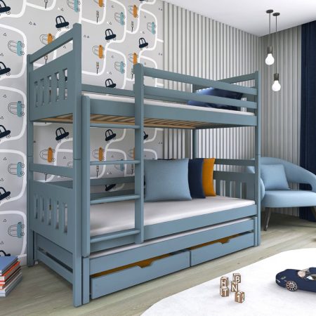 Praktičnost in funkcionalnost: poleg udobja in varnosti pograd Seweryn ponuja tudi praktičnost. S skrito posteljo za nepričakovane goste ali prijatelje vaših otrok boste pozabili na skrbi, povezane s prostim prenočiščem. Omogoča izbiro, ali želite spodnji, izvlečni del skrit pod pogradom ali postavljen samostojno v drug del sobe, kar prinaša prilagodljivost glede razporeditve prostora.