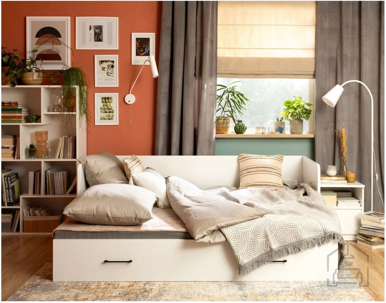 - udobno posteljo za mladinsko sobo, ki združuje funkcijo dnevne sofe in prostora za počitek.