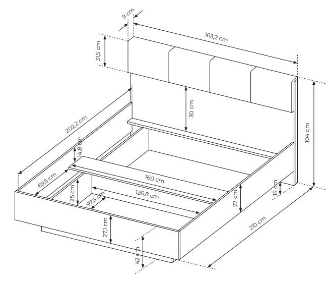 - Stranice postelje so narejene iz visoko kakovostnega MDF-a,