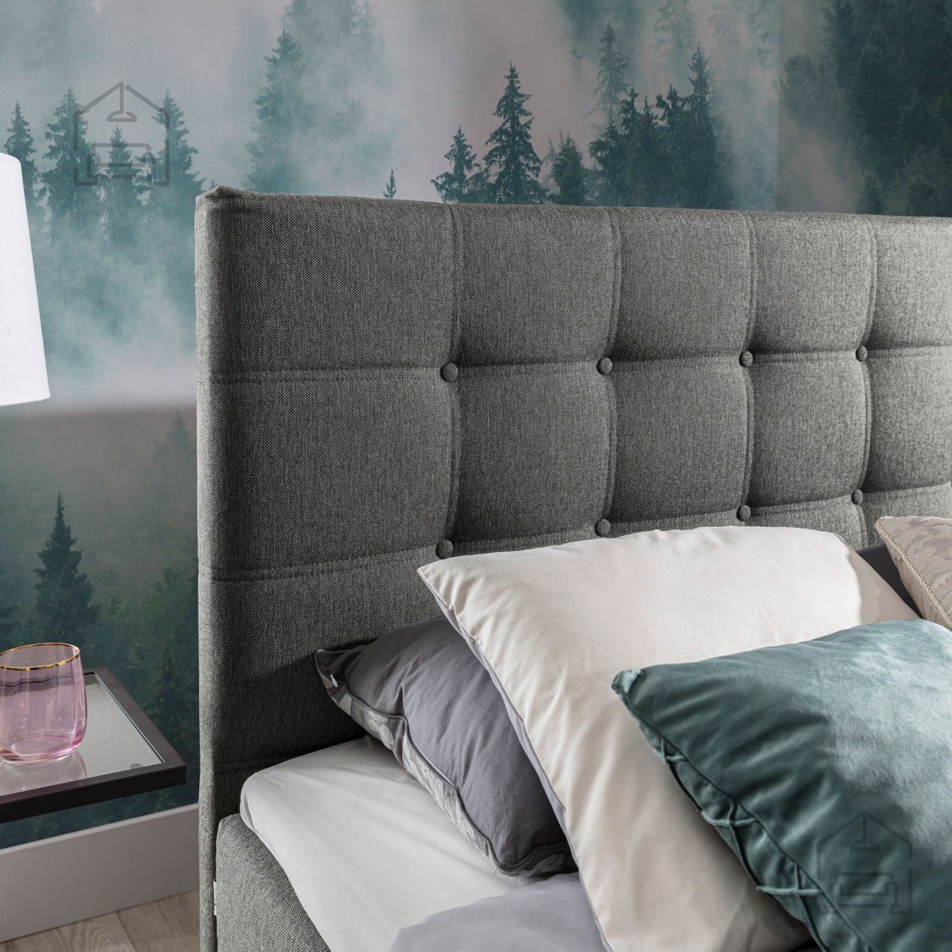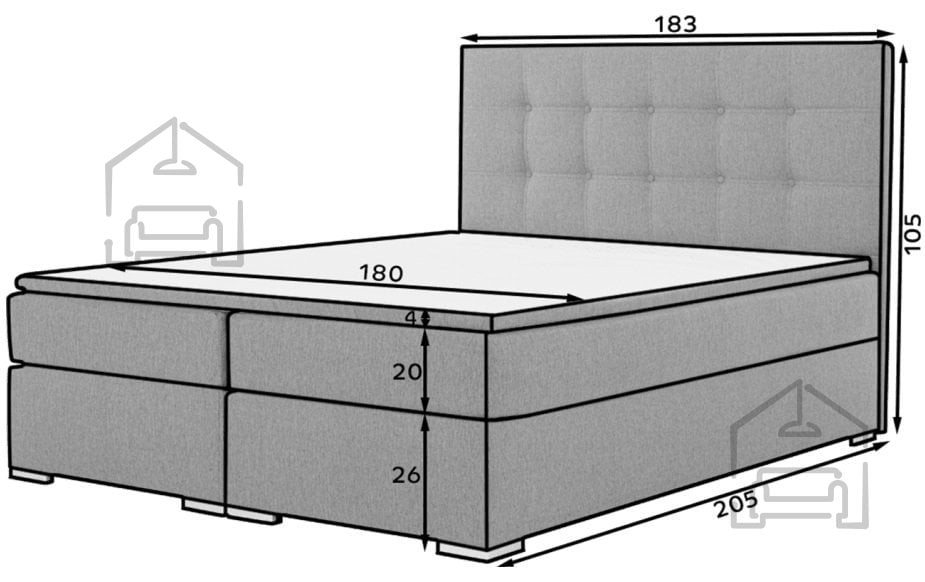 - Boxspring osvnova Iverna plošča. Bonell vzmeti. Višina 36 cm. Celotno oblazinjen s tkanino.