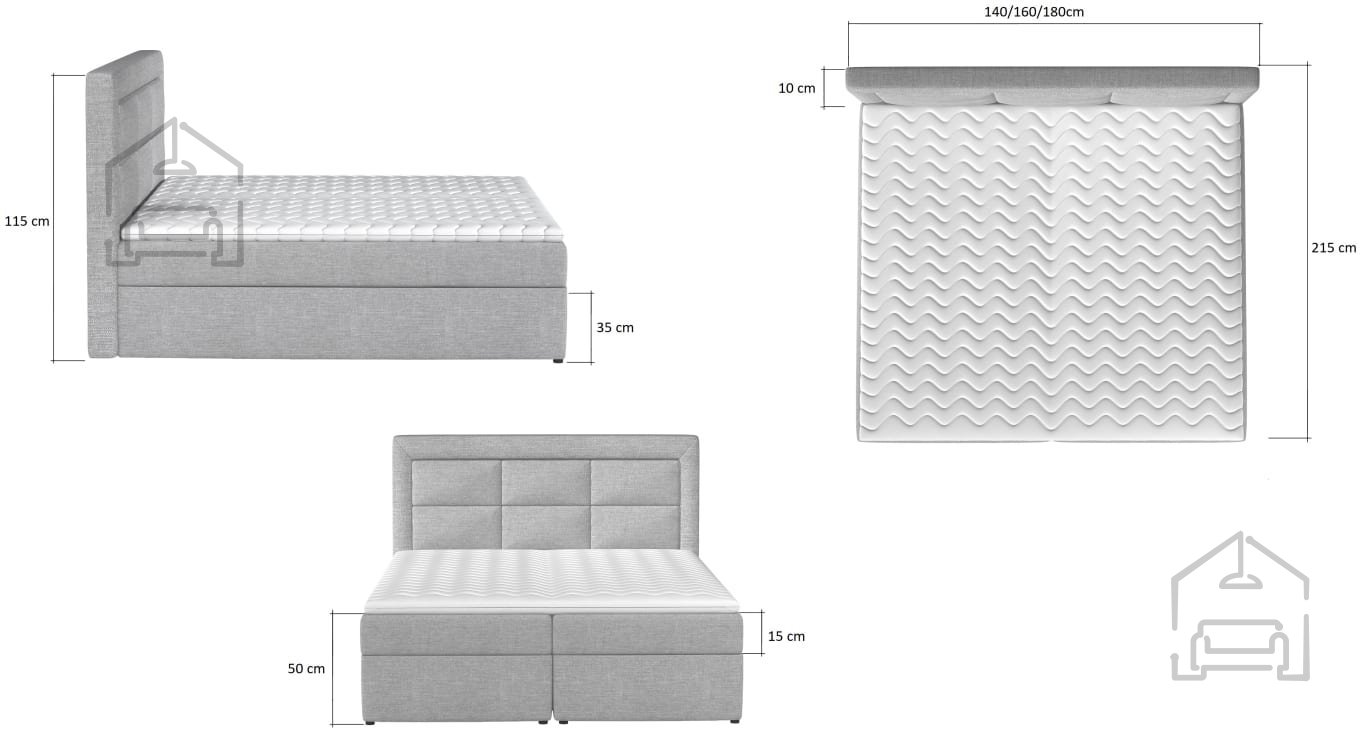 • Boxspring osvnova Iverna plošča. Bonell vzmeti. Celotno oblazinjen s tkanino.