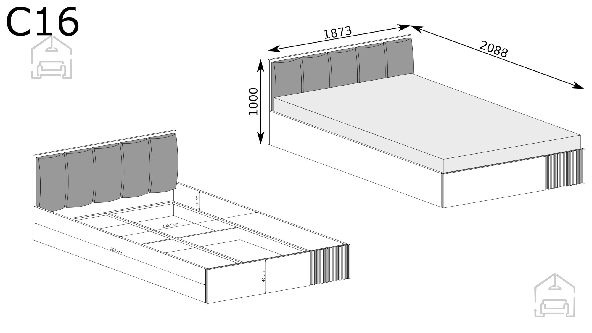 Dimenzije: 1710x1110x2180 mm Oblazinjena postelja Sabrina bo vašo spalnico na eleganten način spremenila v oazo počitka, kamor se boste vedno radi zatekli k počitku. | Material: Iverna plošča, MDF