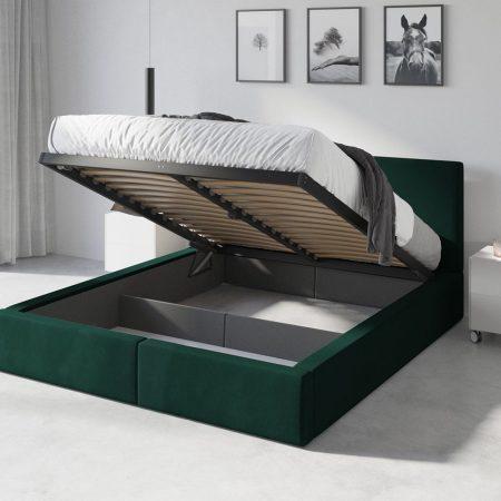Barva: modraDimenzije: 1700x950x2160 mm Odlična postelja Merida z visokim prešitim vzglavjem in dvižnim predalom za shranjevanje posteljnine. Na voljo je v treh barvnih različicah, kar pomeni da bo lahko prilagodila vašemu okusu ter barvni rešitvi vaše spalnice. | Material: tkanina/masiven les