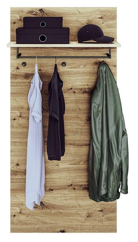 - 1x Obešalnik s polico in obešalno palico. Dimenzije: 60x25x154 cm.